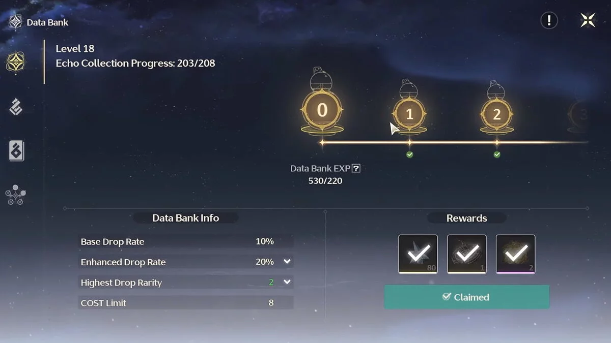 Поставить во все слоты героя самые лучшие эха не получится, ведь у вашего персонажа есть ограничение в виде лимита стоимости (Cost Limit). Повысить его можно при помощи прокачки Банка данных (Data Bank). Игроки вычислили наиболее выгодные комбинации «артефактов»: