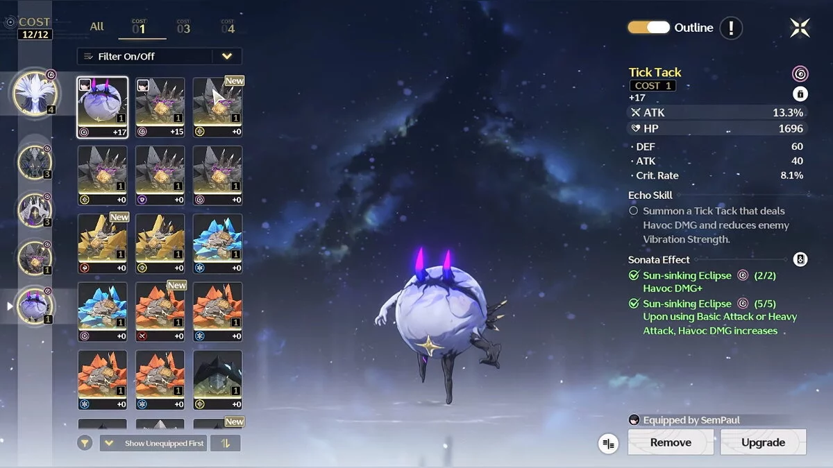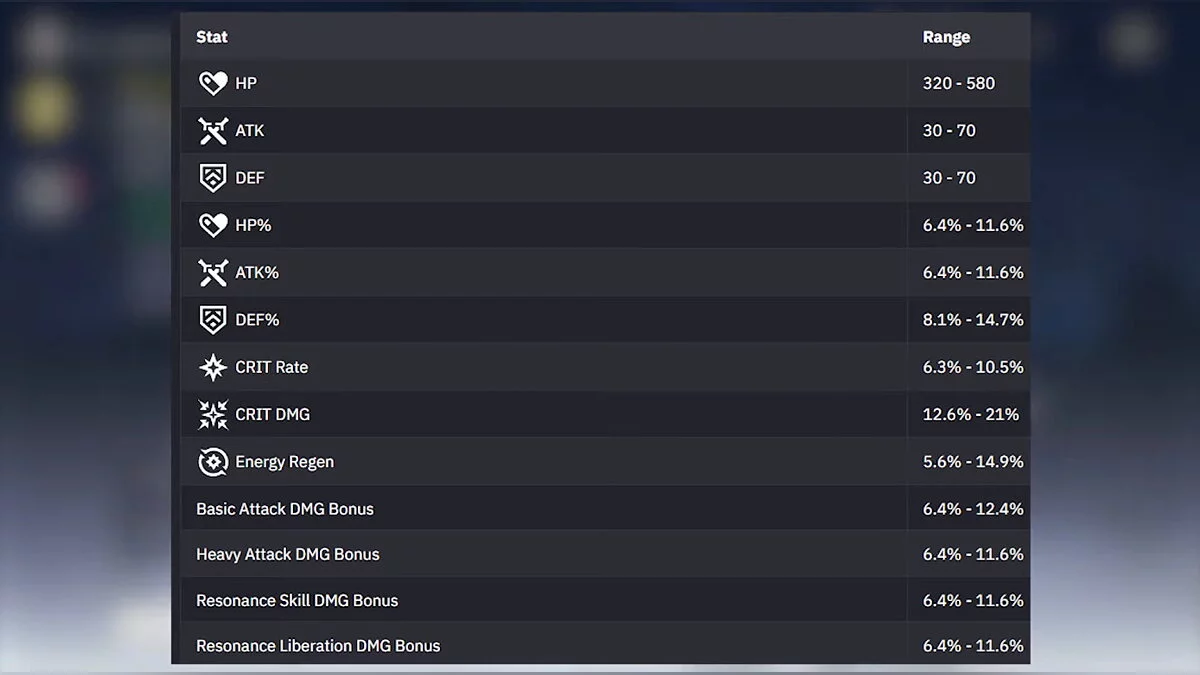 У каждого эха, помимо активного навыка, есть основные и второстепенные характеристики. Чем выше его стоимость (Cost), тем больше бонусов он принесёт вашему персонажу.
