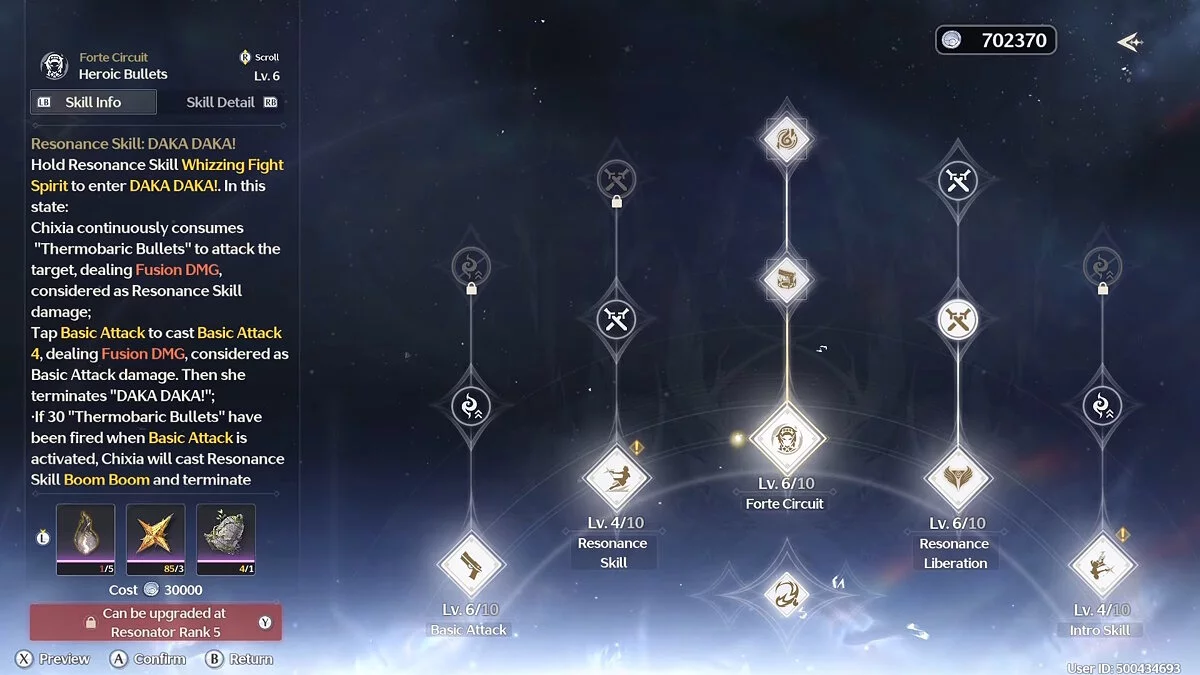 - Первый узел — Фанат геройской игры: Навык Резонанса Чиксии всегда наносит критический удар.