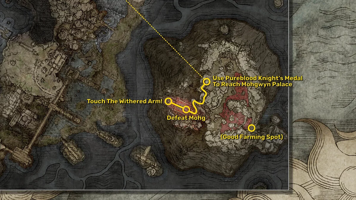 Одно из лучших мест для фарма рун в игре станет доступно, как только вы доберетесь до дворца Могвин перед битвой с Могом. Направляйтесь к Дворцу Подхода к Уступу-Дороге Благодати на юго-востоке региона и выполните следующие действия, чтобы заработать большое количество рун: