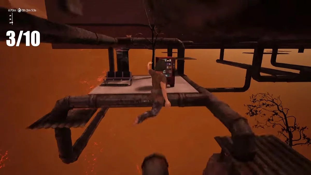 Следующая отметка — 3100 метров. Здесь будет ждать очередной сломанный мост, через который игрокам стоит перепрыгнуть и добраться до вертикальной лестницы. Сделав это, пройдите немного вперёд, чтобы увидеть платформу в форме барабана с крыльями с правой стороны.
