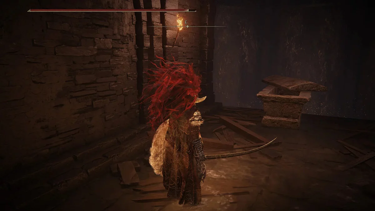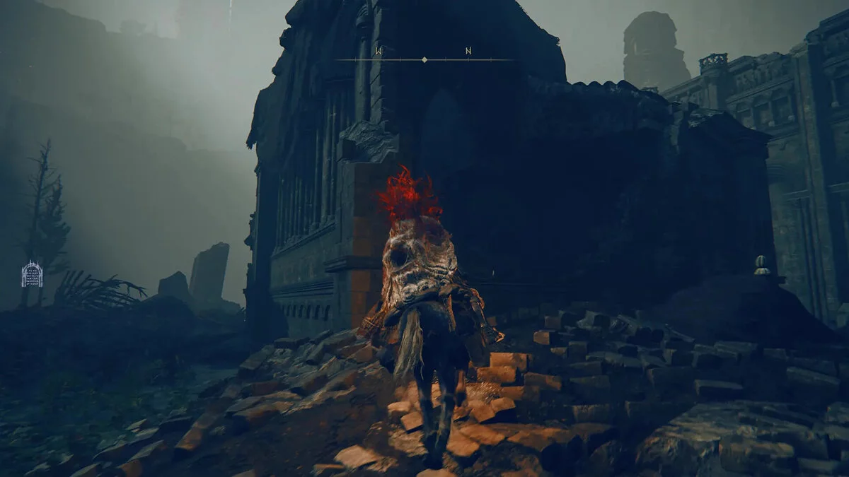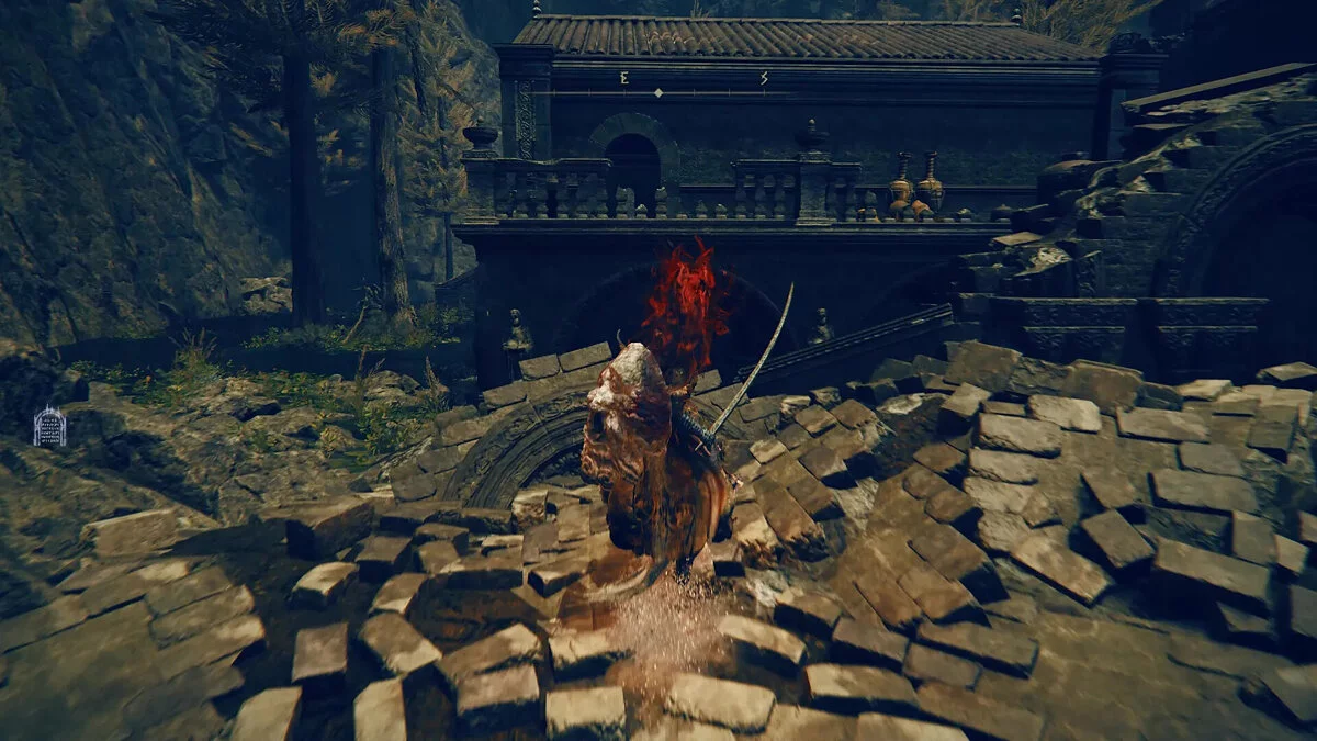 Во-первых, на левой стороне руин (к северу) есть небольшое полуразрушенное здание, по стенам и красным крышам которого можно подняться. По пути вы найдете один потерянный пепел войны (Lost Ashes of War) и три единицы кузнечных камней (Smithing Stone).