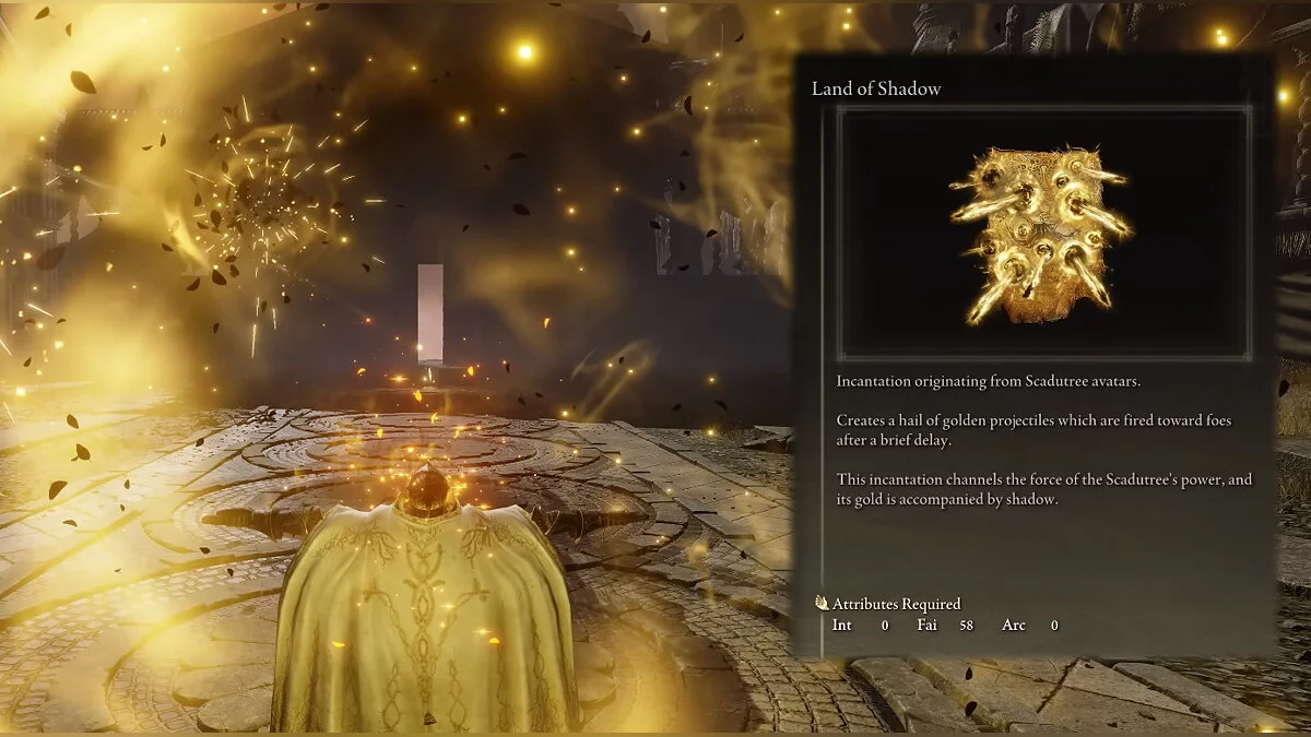 Лучшее заклинание, которое есть в Shadow of the Erdtree. Оно вызывает яркий свет, который убивает врагов на определённой территории. За счёт огромного урона его можно использовать против боссов. А вот во время сражений с рядовыми противниками лучше взять магию, которая расходует меньше концентрации.