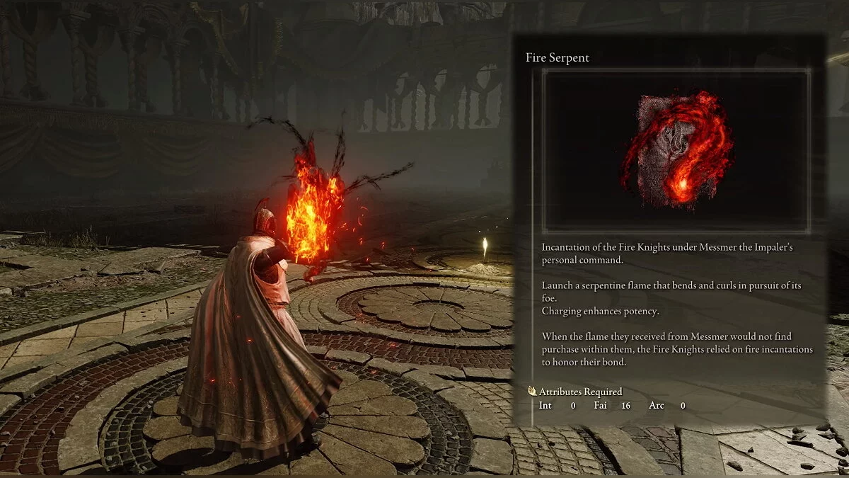 По своей сути, перед нами самонаводящийся огненный шар. Он полезен как против рядовых врагов, так и во время сражений с боссами, особенно против быстрых противников. Его главное преимущество — автоматическое преследование цели. В сочетании с неплохим уроном получается отличное комбо, особенно против врагов, которые уязвимы к огню. А за счёт небольшого расхода энергии вы можете кастовать огненных змеев часто.
