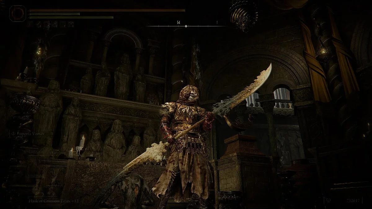 Мимо воина можно войти в комнату с винтовой лестницей, ведущей вниз к лифту. Это приведет вас к мосту через большой ядовитый ров Белурата, к которому вы раньше не могли получить доступ. Перейдите мост и откройте большую дверь, и вы обнаружите огромную алтарную комнату, где ждет Эйфория.