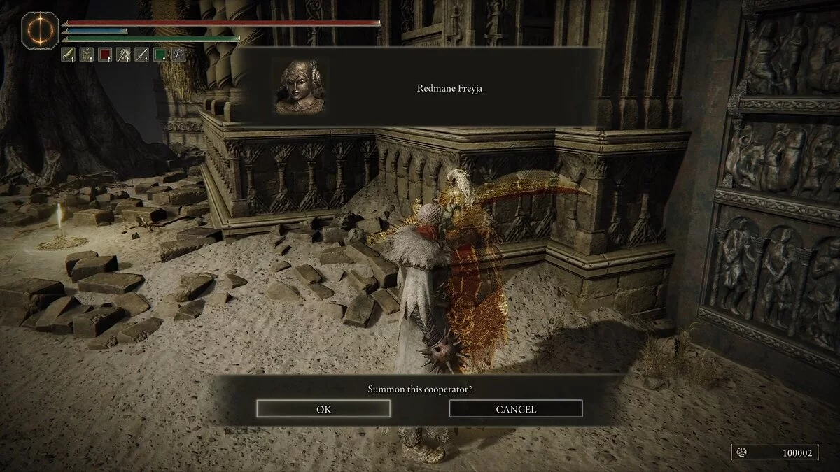 За пределами арены есть призыв, где вы можете попросить Игольщицу Леду прийти вам на помощь. Она сильный союзник, который продавит атаки Релланы и создаст полезные отвлекающие факторы. Ее призыв также даст боссу гораздо больше здоровья. Это может серьезно затянуть бой и дать боссу больше окон для дополнительных атак. Если вы готовы сразиться с напарником, то смело не отказывайтесь от помощи.