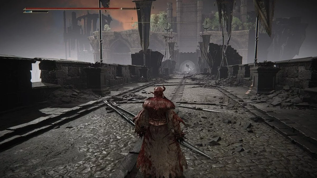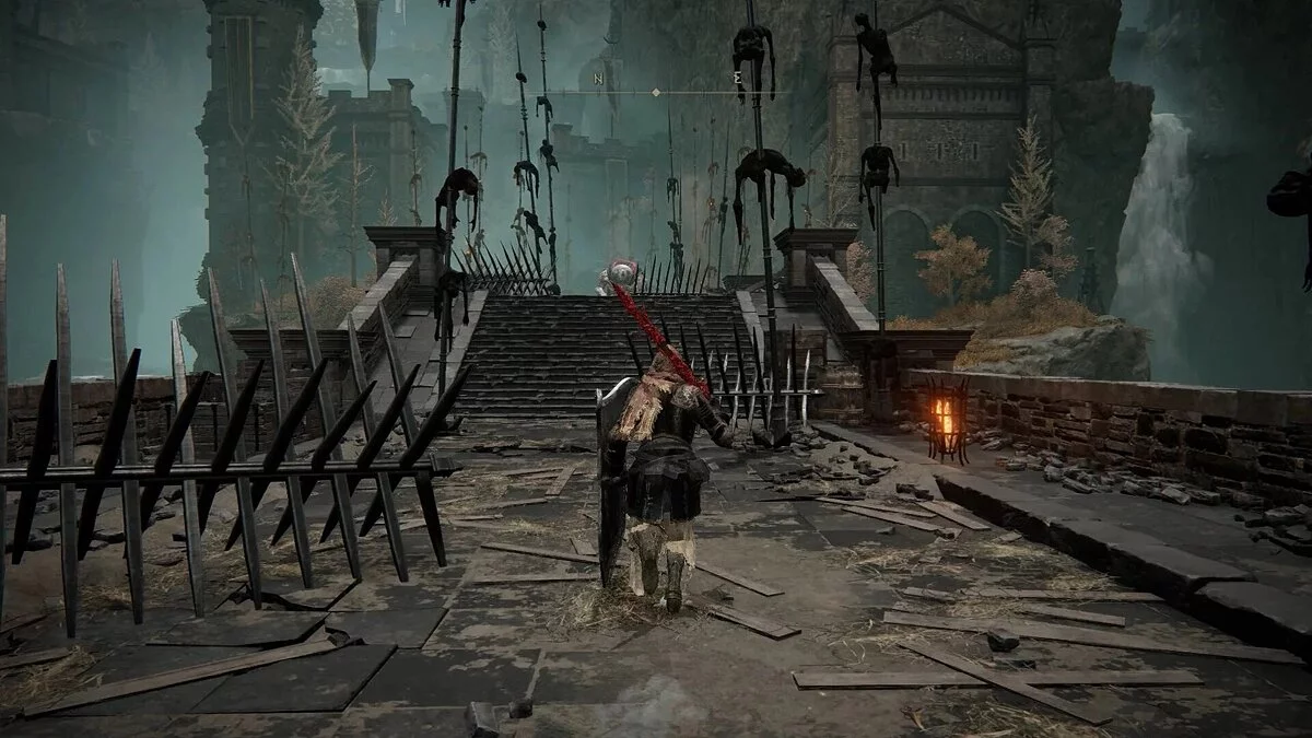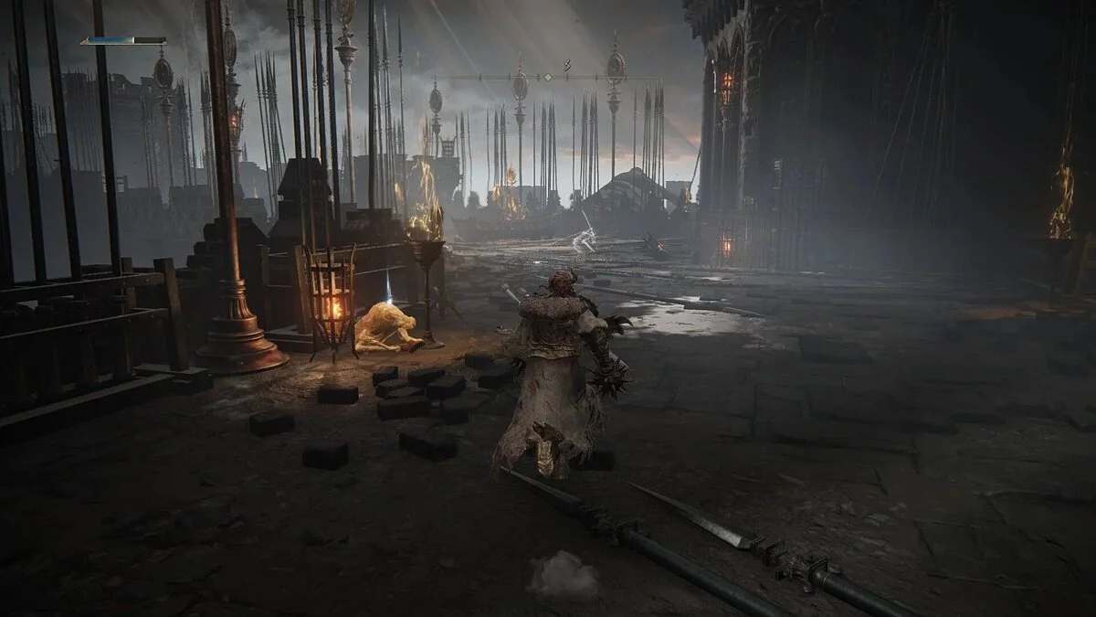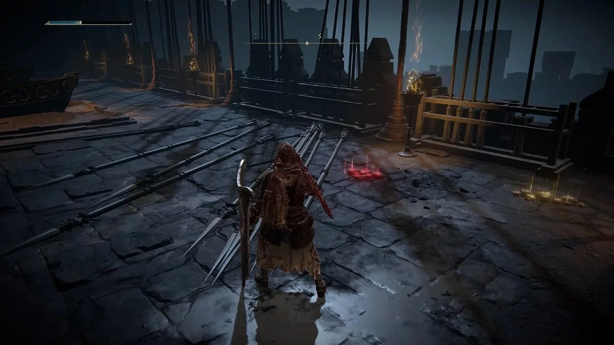Добравшись до места благодати, следуйте по дороге на северо-восток через Великие Ворота. На мосту будут находиться пара рыцарей, но настоящая угроза — это баллиста на противоположной стороне, которая может нанести огромный урон и сбросить вас с Торрента. Старайтесь уклоняться в разные стороны, чтобы случайно не получить стрелу.