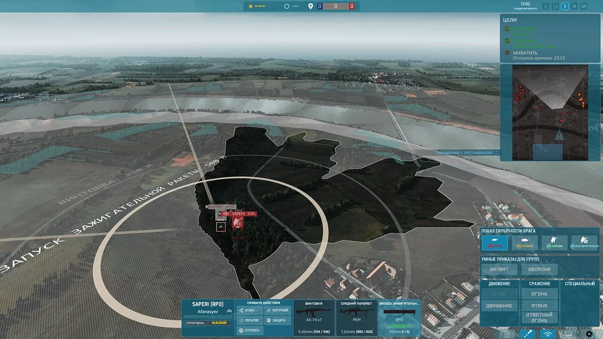 Неизбежно вмешается растительность, (не) видимость со стороны других подразделений, дружеский огонь и так далее. Механик на «низовом» уровне много и все придется учитывать при отдаче команд. Порог вхождения высокий: понять азы можно часов за 6, но разобраться в основах геймплея часов за 12. Это, не говоря про глобальный режим «Генерал армии», в котором игра превращается в TBS со своей глобальной картой. Касаться его в рамках данного гайда мы не будем.
