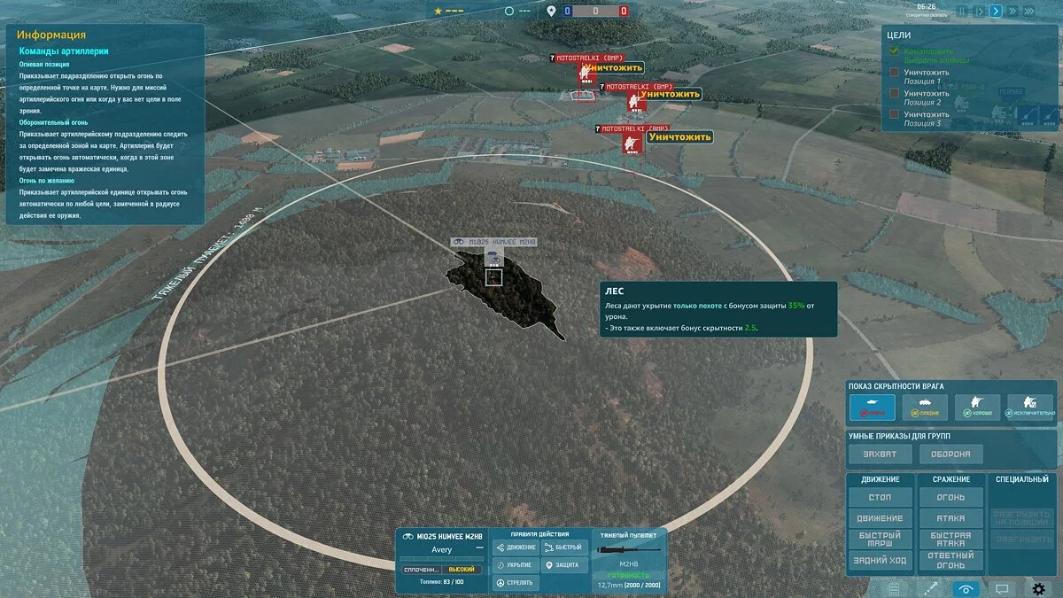 Если вы хотите результатов на высоких уровнях сложности, то приготовьтесь изучать как сильные-слабые стороны каждого подразделения, так и классовые механики. Например, отряд пехоты обычно вооружен автоматами, пулеметами и противотанковыми снарядами, и у каждого вида оружия своя дистанция ведения огня и цели. Тогда как класс «артиллерия» имеет разные варианты ведения огня — от масс-пуска неуправляемыми ракетами до точечных выстрелов арт снарядами и не факт, что второе хуже.