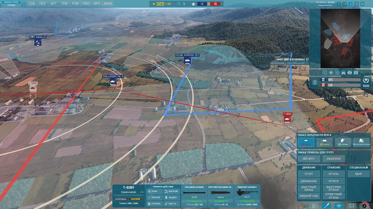 Но банальным «терять меньше своих бойцов и уничтожать больше вражеских» здесь не обойтись, поскольку вы командуете всей армией целиком. Успешный танковый прорыв может быть обнулен прилетевшей эскадрильей вражеских вертолетов, а упорное сидение в обороне быстро закончится, когда супостат подкатит артиллерию.