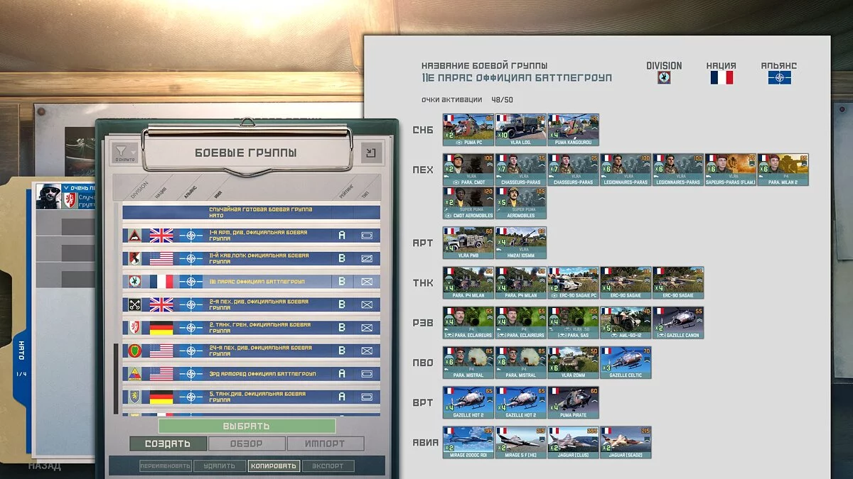 Итак, в WARNO вы управляете целой армией, получая очки призыва за успехи на фронте. Но армии могут быть разными — пехотными, танковыми, десантными, сбалансированными. Формируются они из тех или иных родов войск. Ознакомиться со всем ростером можно в разделе «Арсенал». Древо большое и первое время может даже отпугивать, настолько огромен выбор.