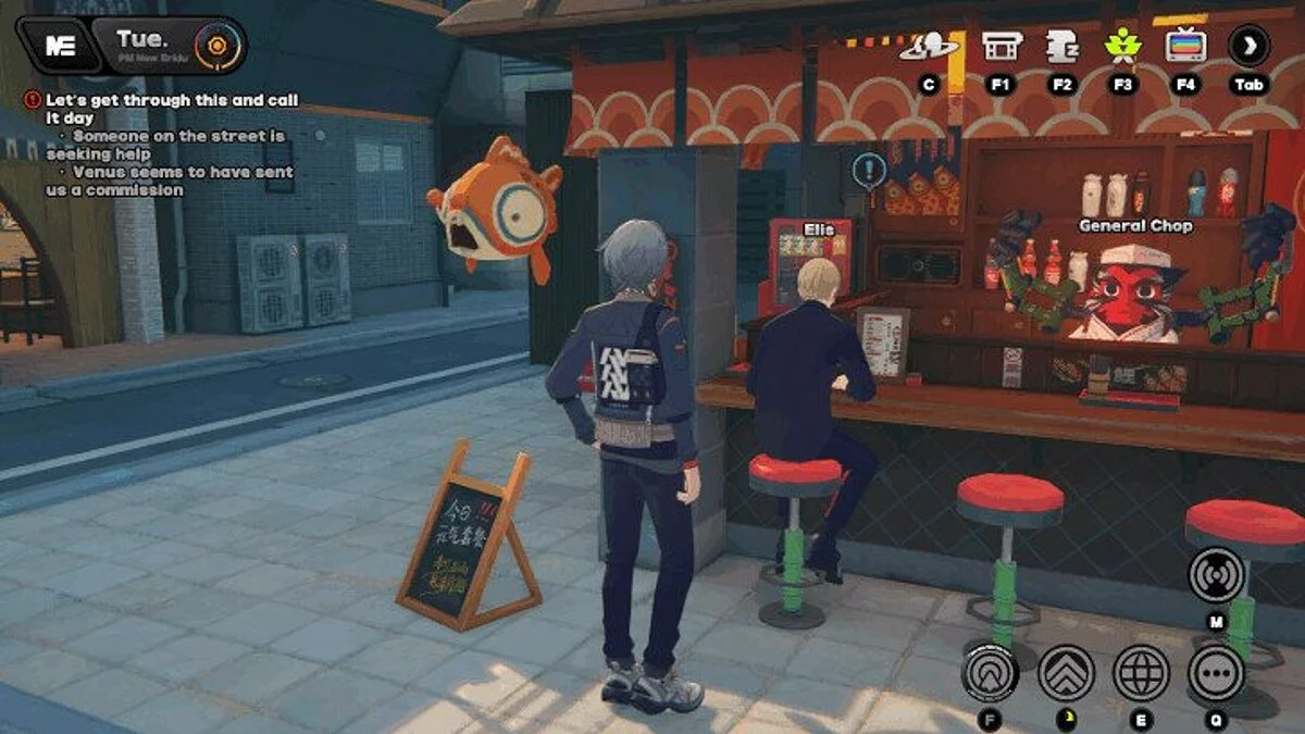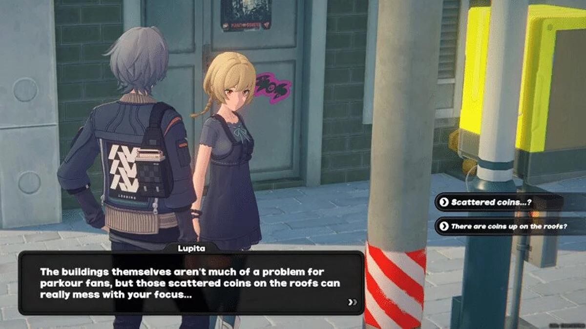 Полдень. Поговорите с Эллисом, который стоит возле лапшичной. Выполните миссию «Поговорить с мусорным бачком», чтобы разблокировать доступ к памятным монетам в целом.