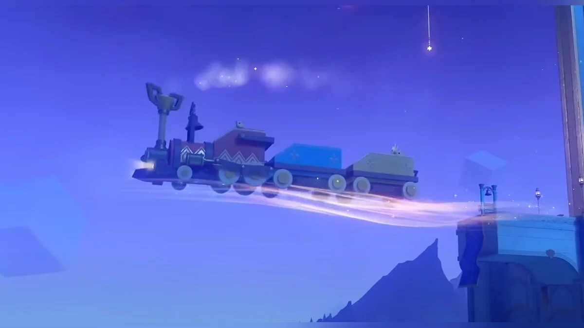 Во время задания «Они идут по звездам» вам предстоит прокатиться на летающем поезде. После окончания квеста его можно будет увидеть на самой высокой горе Столицы Созвездия. Перед нами отсылка на Звёздный экспресс из Honkai: Star Rail, другого проекта от MiHoYo, авторов Genshin Impact.