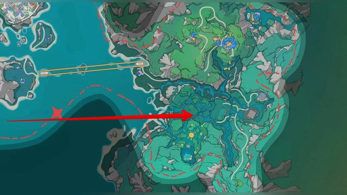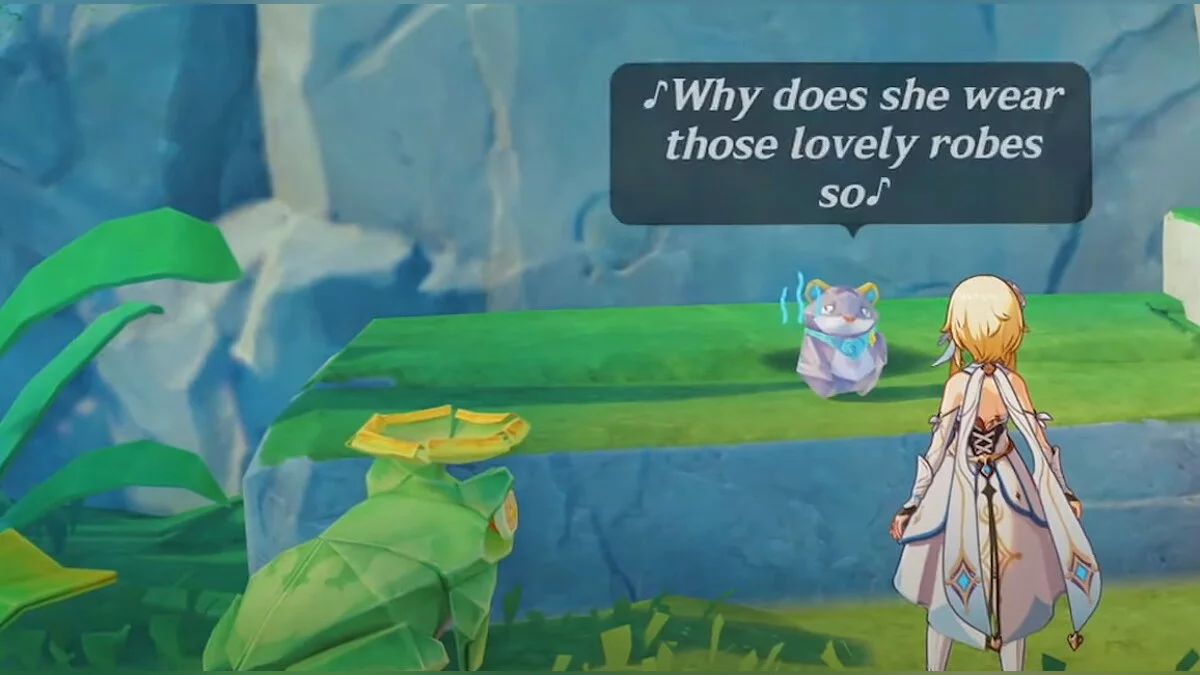 Не обошлось без отсылок на текущий ивент. На острове, который указан на карте, можно встретить мирных монстров. Анемо-слайм — явный намёк на Скарамуччу, Дендро плесенник — на Кирару, Земляной Гео моровик — на Навию, а Гидро плесенник — на Нилу.