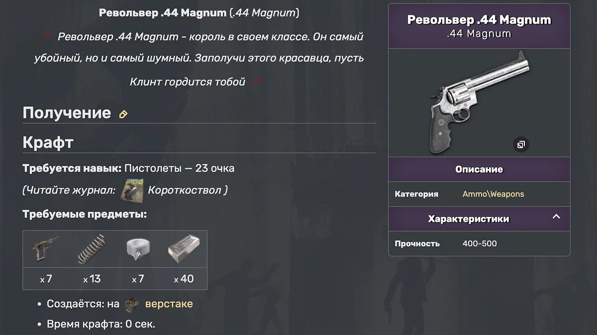 Еще одно хорошее оружие для небольших дистанций. Стандартный револьвер обладает огромной пробивной силой, однако есть и явный минус — всего 6 патронов в магазине. Перезаряжается оружие достаточно медленно, поэтому позаботьтесь о том, чтобы не оказаться в окружении в данный момент.