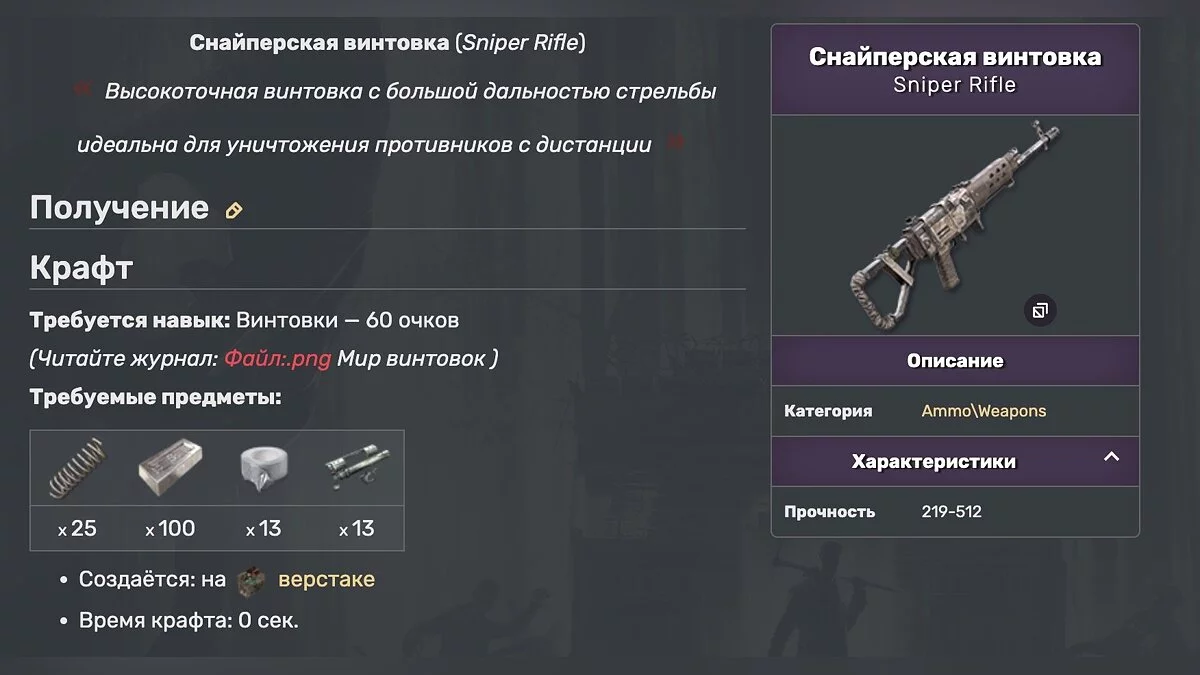 Один из самых популярных стволов среди выживальщиков. Эту винтовку довольно просто скрафтить на ранних этапах игры, однако для раскрытия максимального потенциала потребуется ряд модификаций для увеличения магазина, урона, а также хороший прицел. Кроме того, благодаря перку вы сможете открыть ее улучшенную вариацию, которая будет еще мощнее.