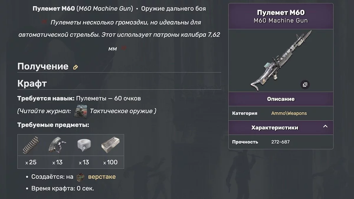 Высокий урон, скорострельность и большой боезапас — что ещё нужно против орд зомби? Для пулемета хорошо подойдёт увеличенный магазин на 120 патронов, сошки и прицел. Так вы сможете занимать удобные позиции и ещё больше увеличить эффективность оружия.