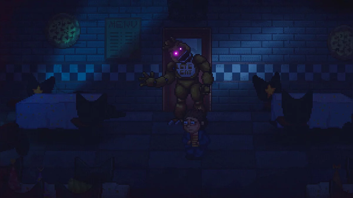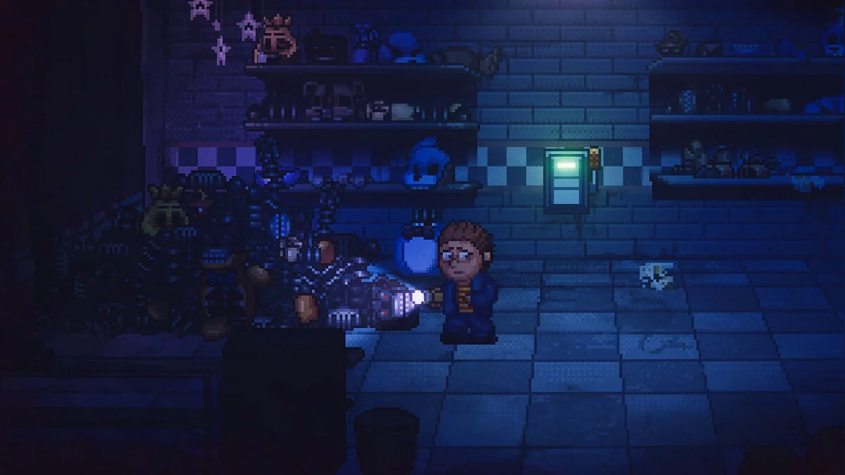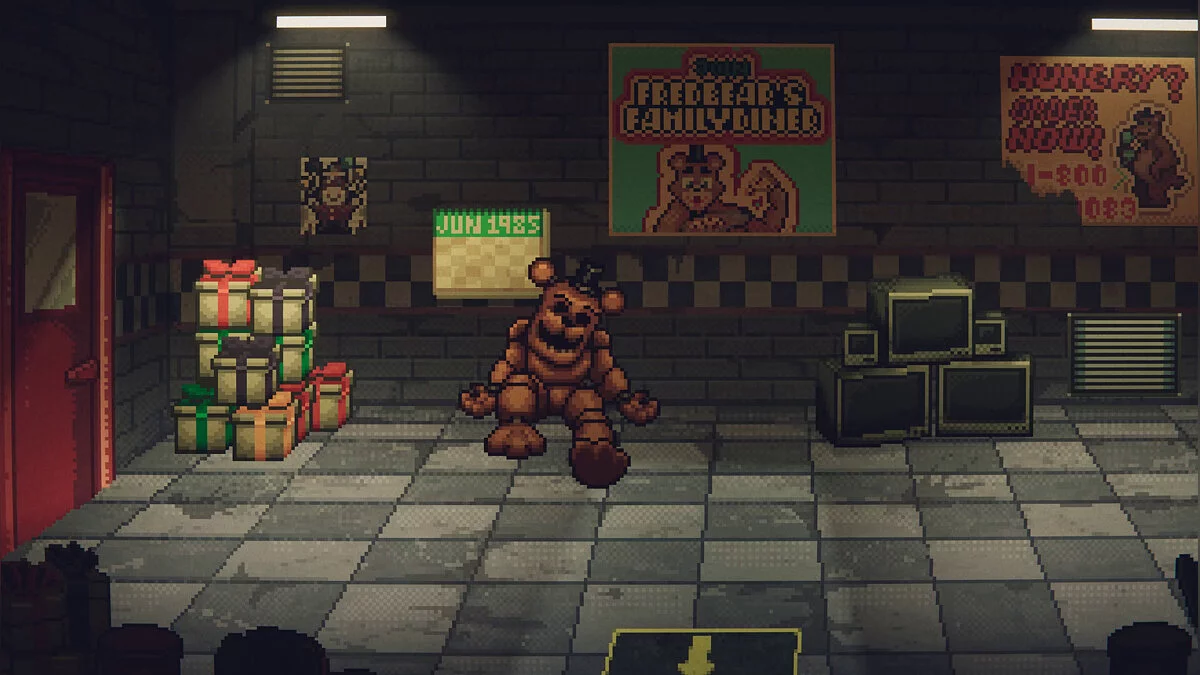 Проснувшись в своей комнате, можете безопасно выходить из дома через главный вход. Добравшись до пиццерии, исследуйте комнату охраны и возьмите у Джеффа ключ от комнаты. Из зала с автоматами на вас вылетит аниматроник, от которого придётся сбегать в прошлое. Спрячьтесь в любом удобном месте, но лучше всего за решёткой в холле для вечеринок.