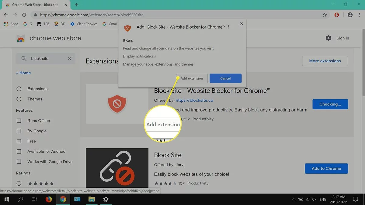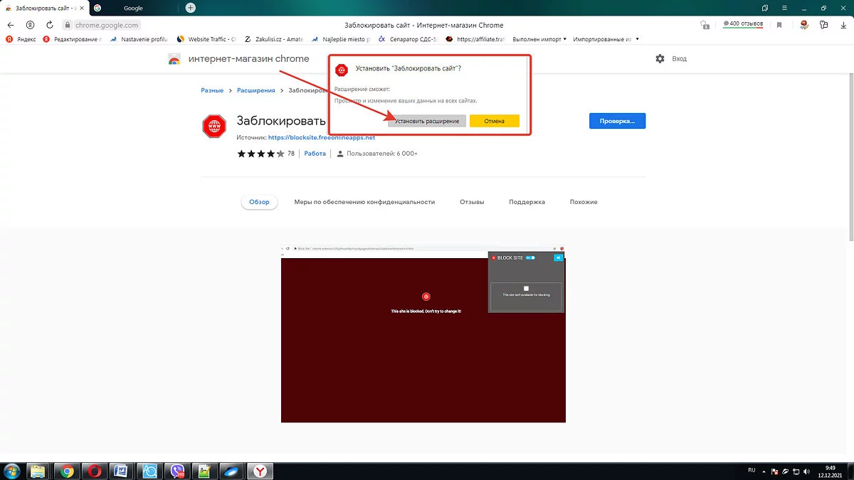 Для блокировки сайтов через расширение в браузере выполните следующие шаги: