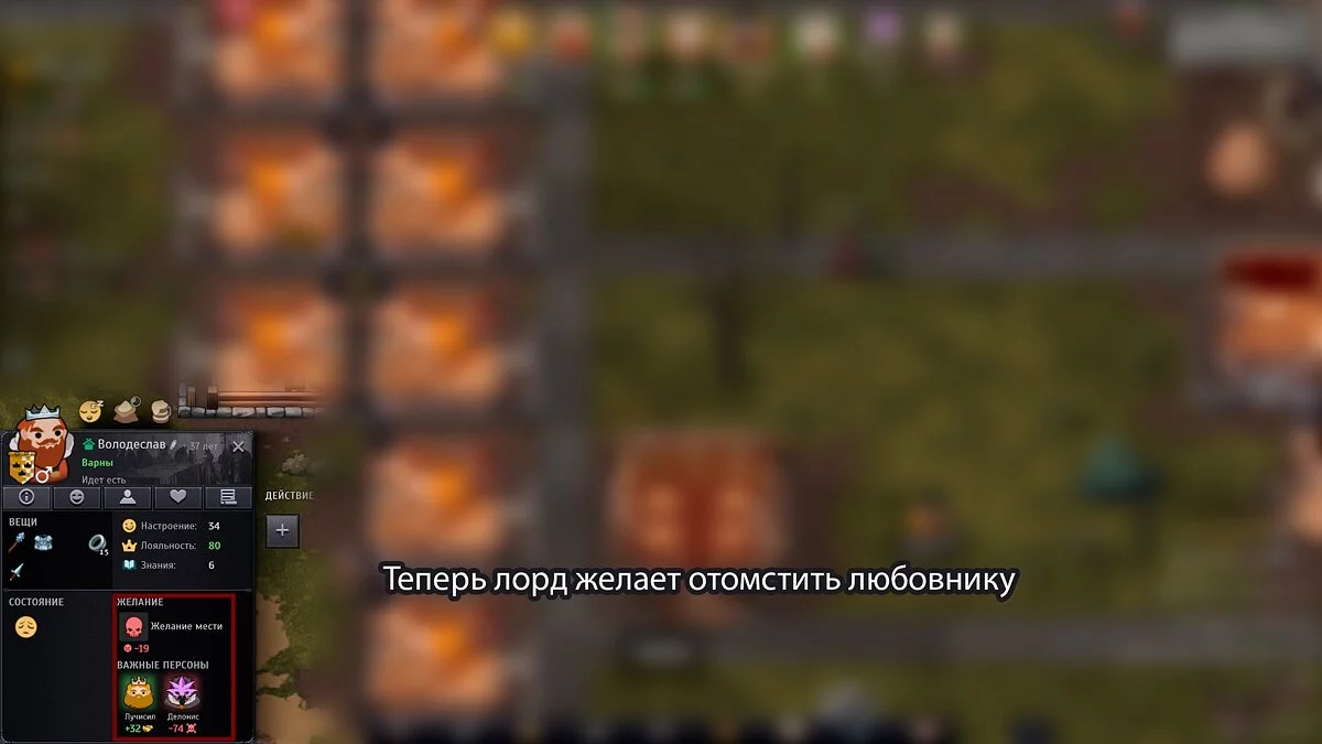 А еще дворяне наделены своеобразной «свободой воли»: ходят куда хотят и делают что хотят, у них есть свои потребности и мысли, что делает геймплей менее предсказуемым, а также похожим на The Sims. Старайтесь выполнять их желания.