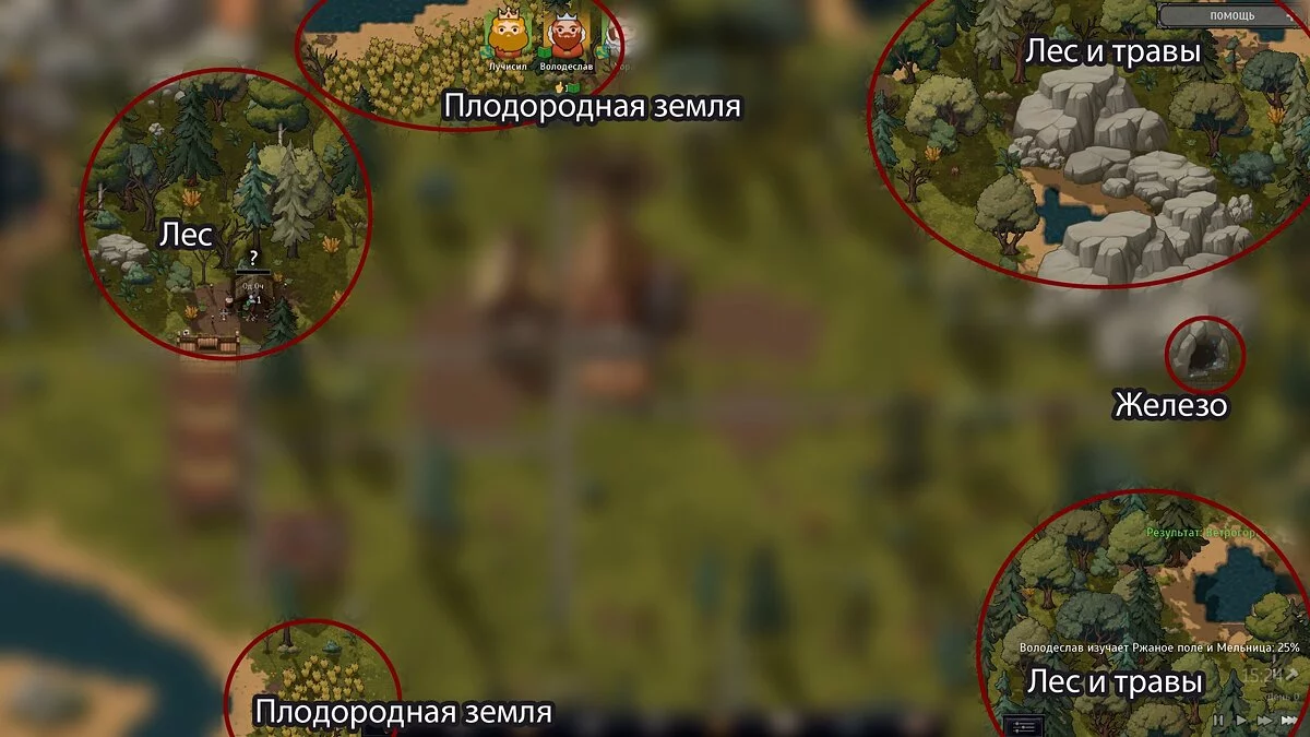 - глобальном, где ваша провинция — одна из множества других. У каждой провинции есть набор стартовых ресурсов и пара деревень-помощниц, производящих небольшое количество полезного сырья. А еще есть землевладельцы — другие благородные семьи, что также стремятся к успеху и будут вашими врагами или союзниками на этом пути. Действия здесь носят командный характер, напрямую рулить не получится.