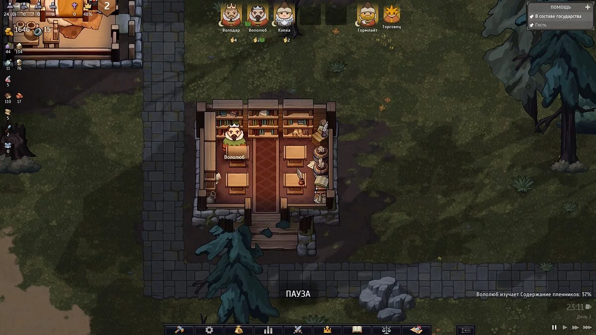 Чтобы жизнь медом не казалась, книги и лорды разделены по языкам. Если книга написана на языке, которого ваши лорды не знают, они не смогут её прочитать. Предусмотрена функция создания копии книги: лорд, владеющий нужным языком, может сделать перевод, а затем другой лорд с достаточным интеллектом сможет её изучить. Однако копирование требует дорогостоящей бумаги, а это механика мидгейма и далее. В начале просто следите, чтобы язык книги соответствовал языку вашей фракции.