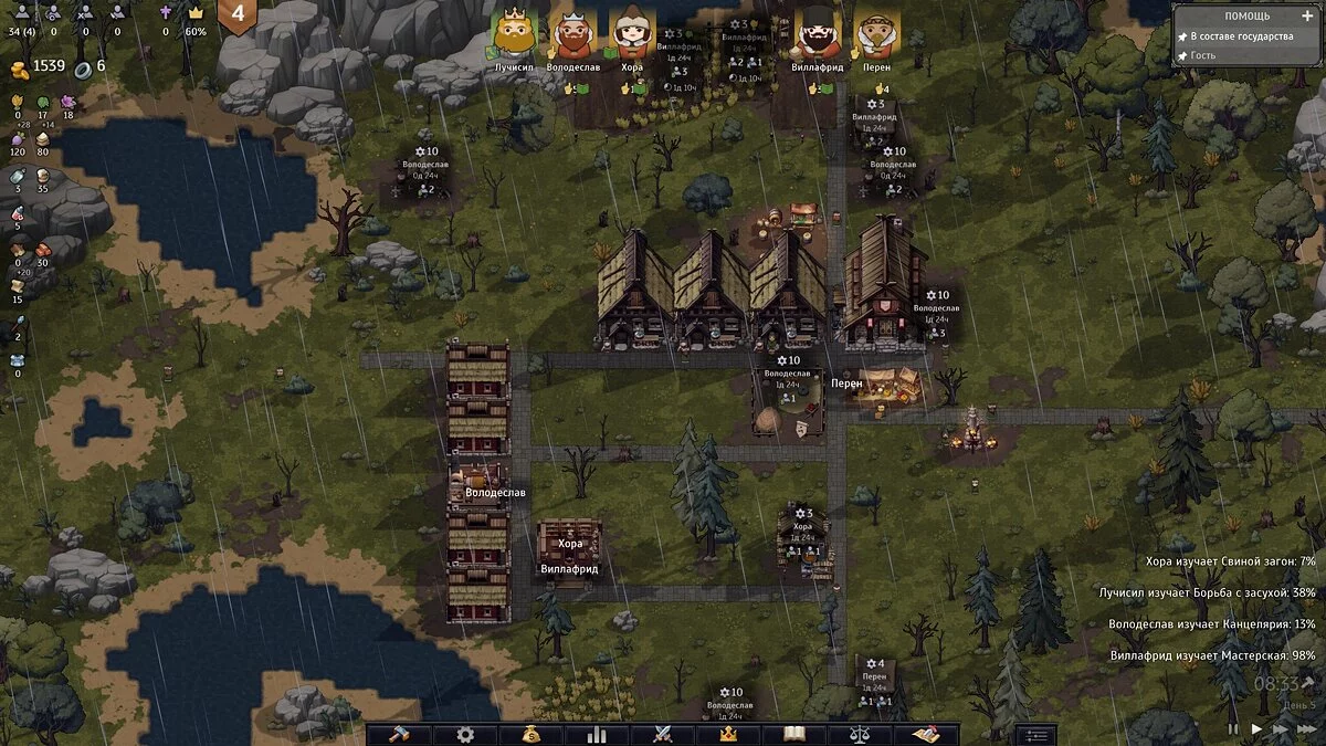 Раздайте указания. Последнего, третьего лорда, отправьте раздавать указания по имеющимся зданиям. Указания действуют несколько дней, но лорды стараются обновлять их каждое утро, если довольны и не голодны. Как только этот лорд освободится, отправьте его изучать еще одну книгу.