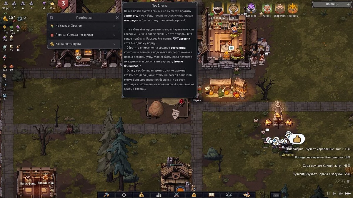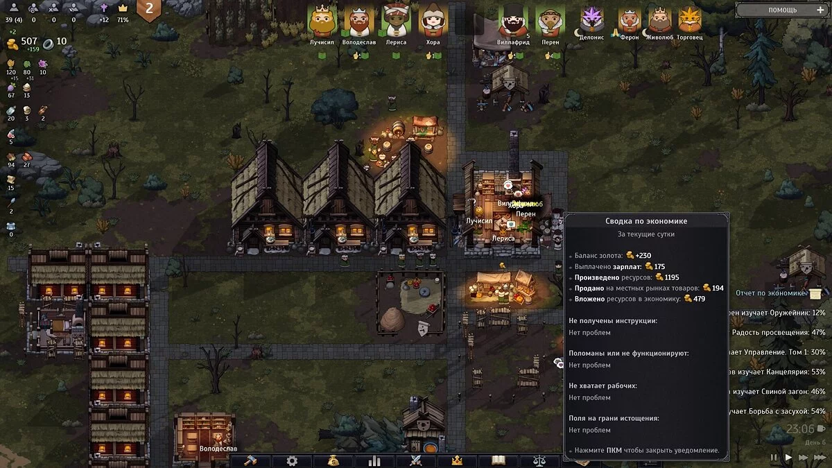Учтите, что по мере развития города игра сама будет расторгать торговые соглашения, чтобы было кому покупать у вас более дорогостоящие товары, как ту же бумагу, оружие и доспехи. Если чувствуете, что пока не готовы двигаться дальше, не стройте соответствующие здания.