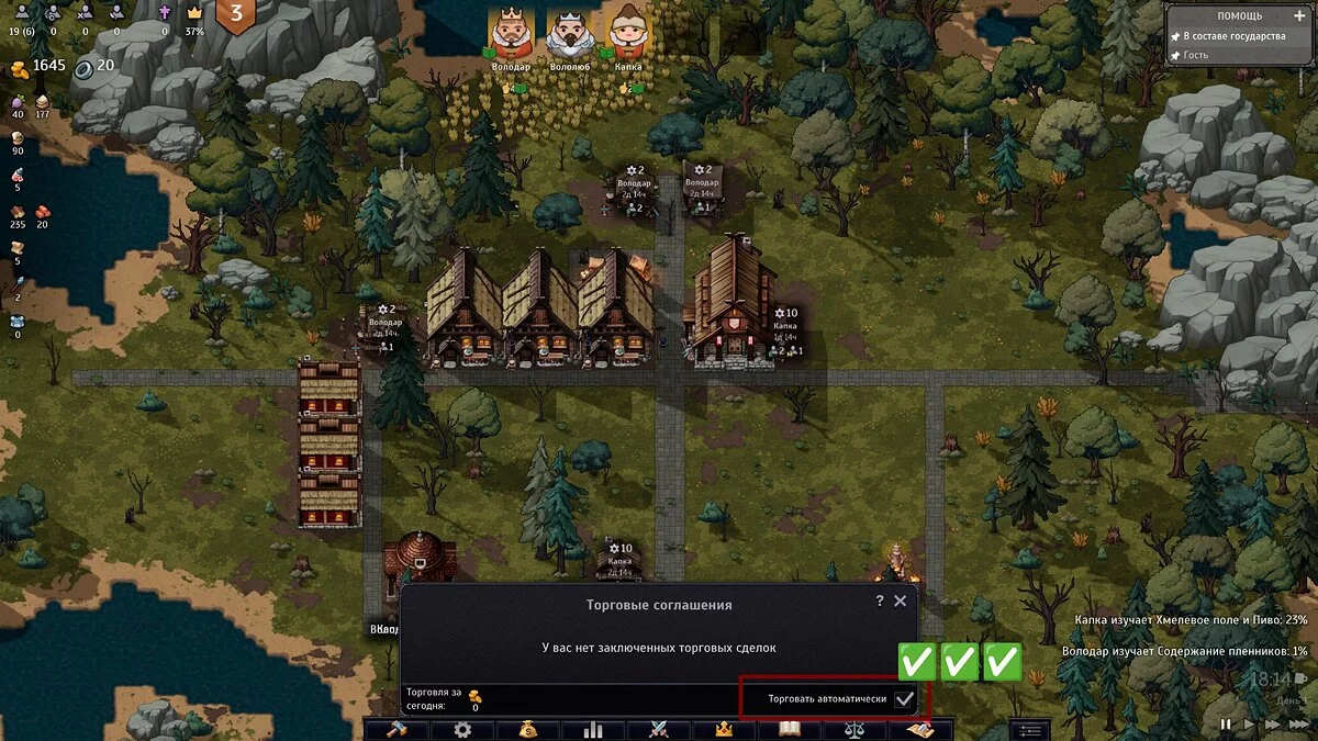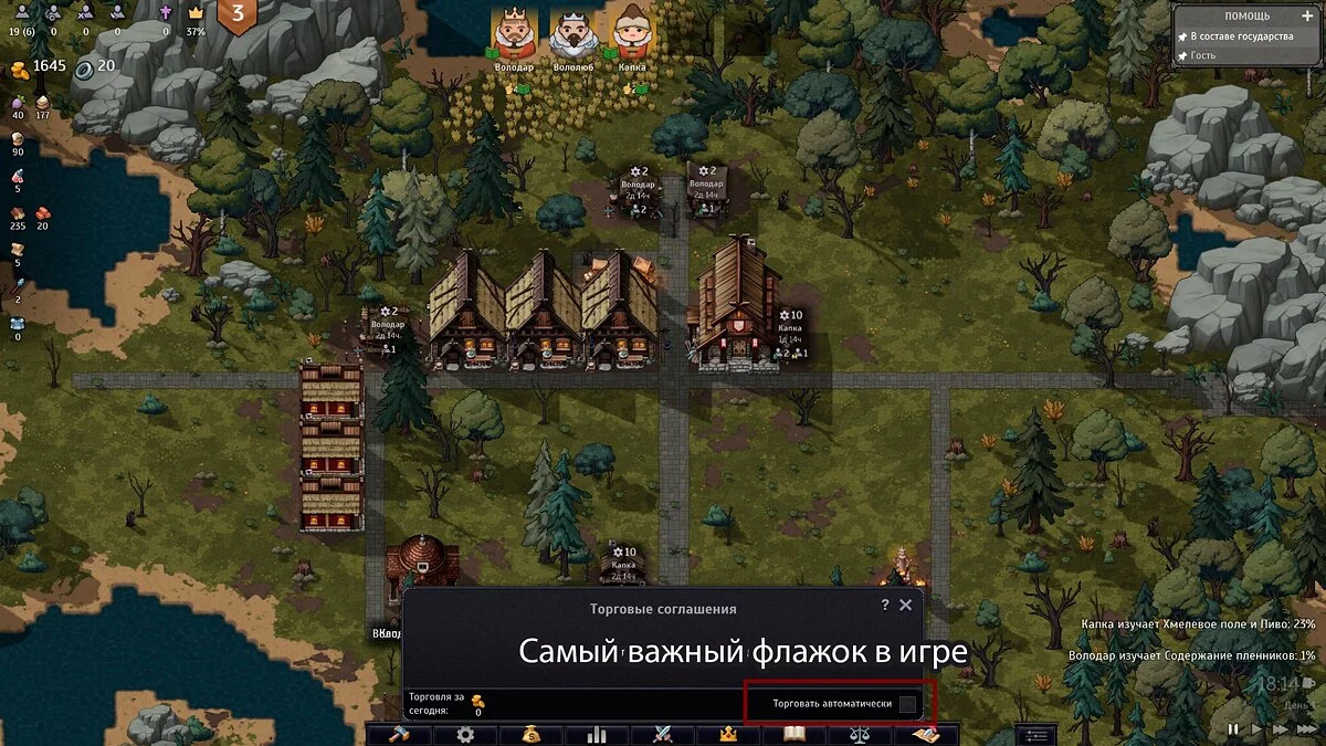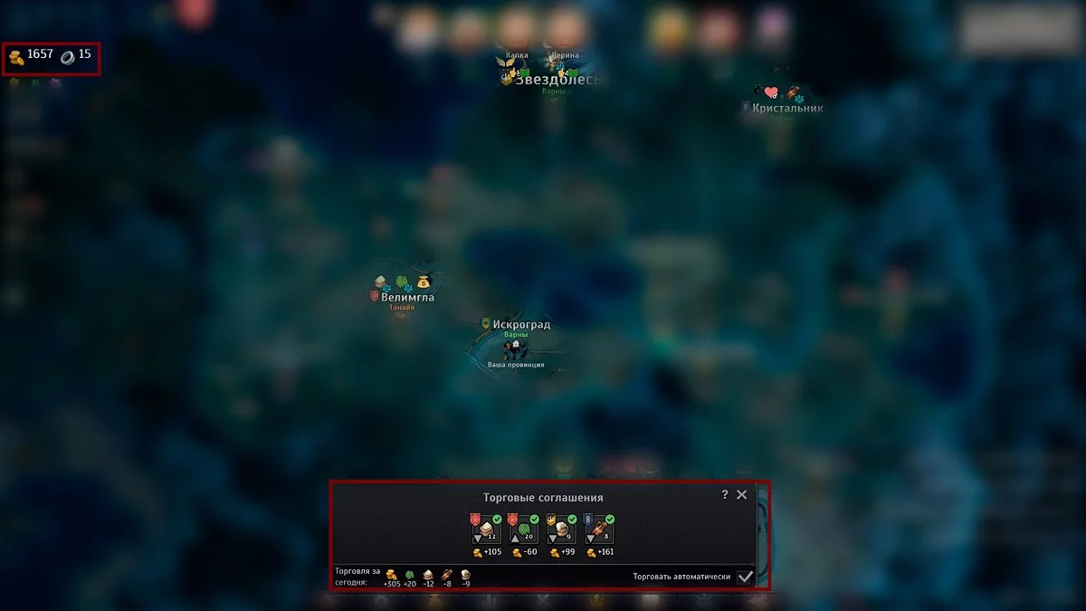 В начале игры наиболее выгодно продавать пиво, душистый эль и муку. Позже, с развитием города, можно заработать на продаже оружия и доспехов, но это потребует другого уровня управления и города в целом. Не переживайте о закупке сырья (руда, хмель, пшеница, лес) — если не увлекаться, конечный продукт все равно найдет покупателя и принесет прибыль. А вот если вы не сможете поставлять товар в нужном объеме, то торговое соглашение будет расторгнуто.