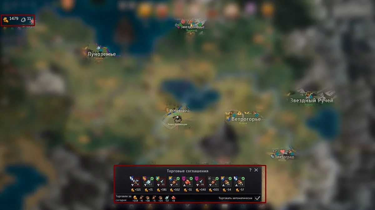 В Norland золото скорее служит разменной монетой, чем средством накопления. Вам необходимо следить за балансом, чтобы он не уходил в минус, но не бойтесь тратить золото, главное — обеспечить стабильный приток. Как-то добыть золото в игре нельзя, да и других активов для самостоятельного конвертирования в монеты в ранней версии игры не было. Поэтому единственный способ заработка — это торговля. Она представлена двумя основными вариантами: