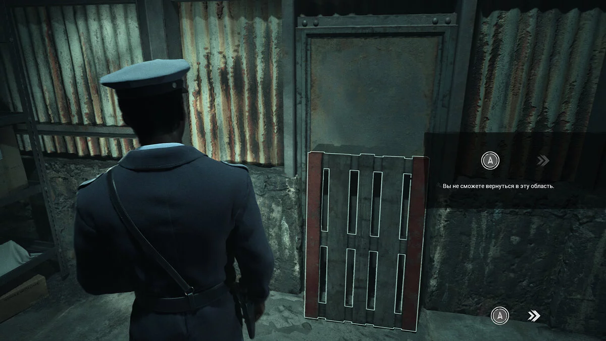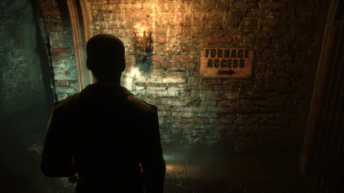 Теперь вернитесь немного назад. Сразу после того места, где вы ползли, справа будет щель в стене. Будьте осторожны, там нужно будет вовремя нажать кнопку, чтобы полицейский избежал ожог горячим паром. Больше тут делать нечего, поднимайтесь по лестнице впереди.