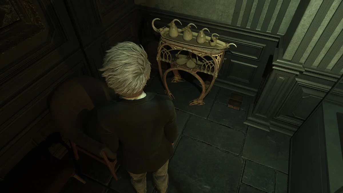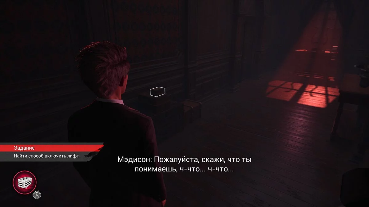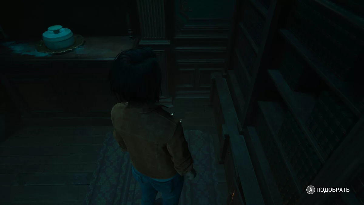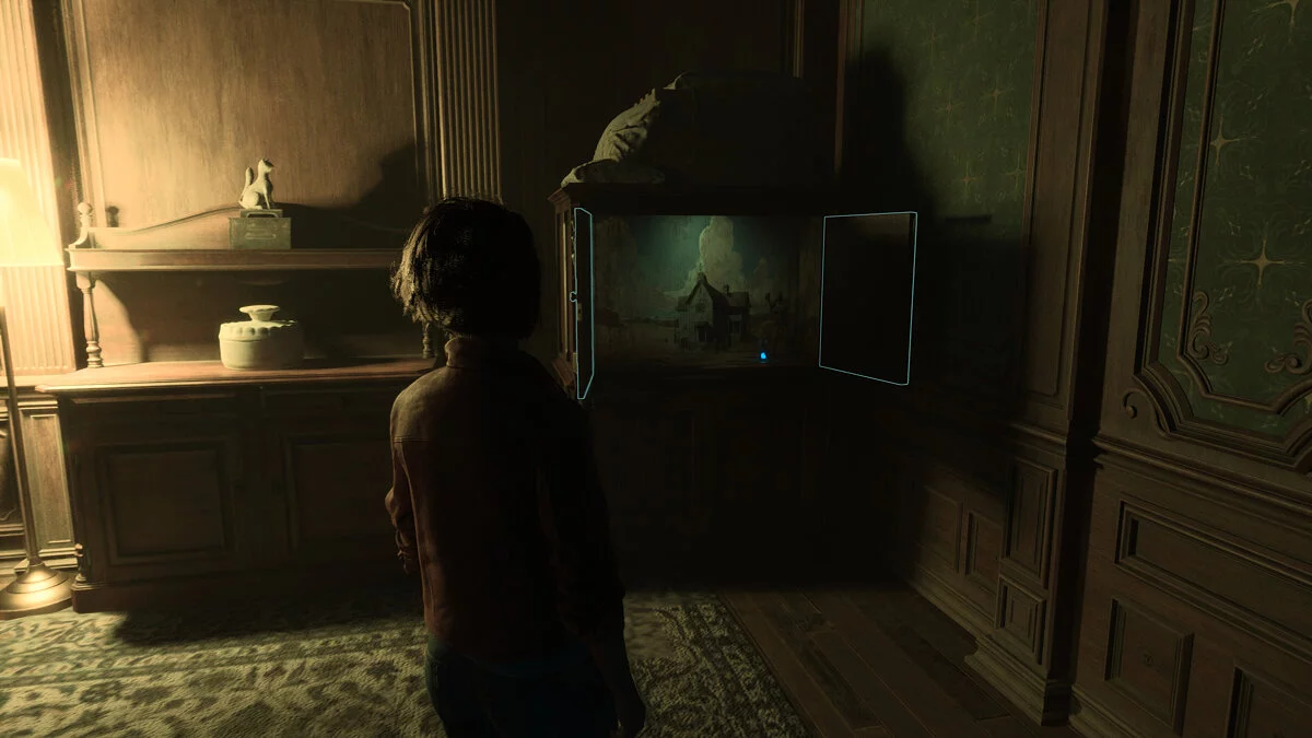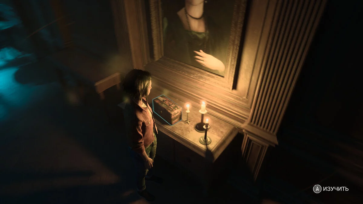 Оказавшись в вестибюле особняка вы продолжаете играть за Мэдисон. Тут стоит осмотреться. На первом этаже по левой стене есть освещенная картина. Под ней стоит ящичек с найденными ранее фигурами.