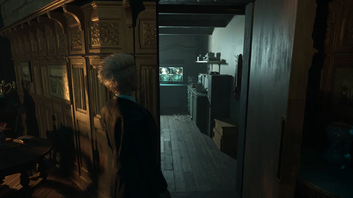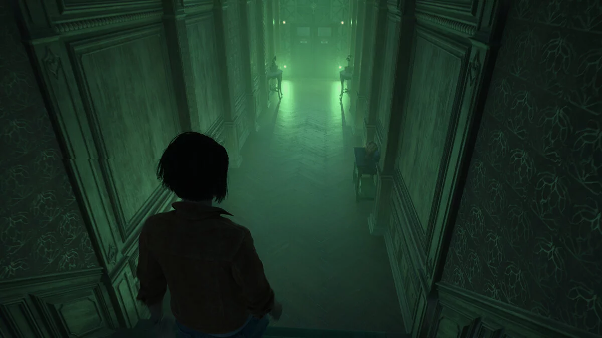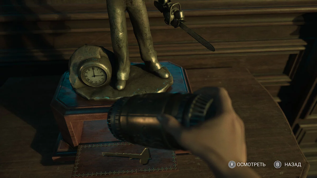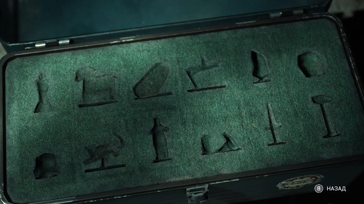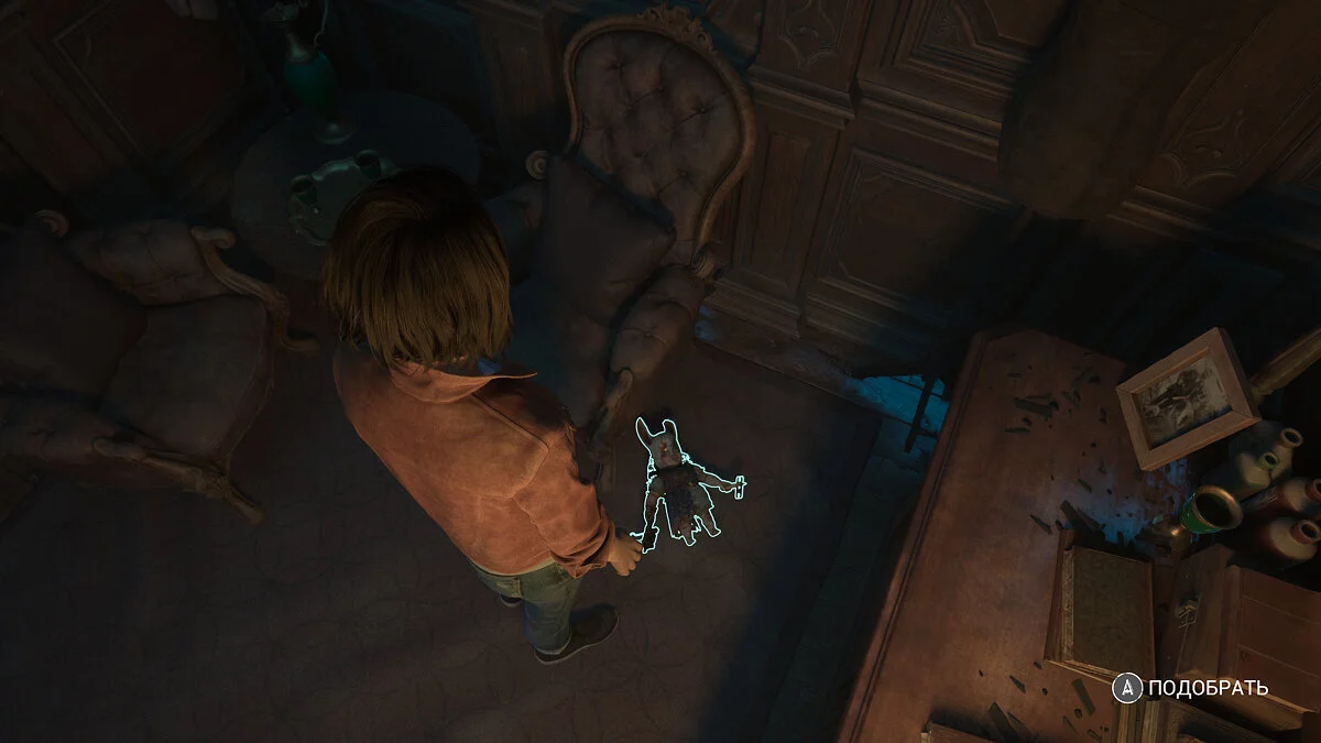Оказавшись в вестибюле особняка вы продолжаете играть за Мэдисон. Тут стоит осмотреться. На первом этаже по левой стене есть освещенная картина. Под ней стоит ящичек с найденными ранее фигурами.