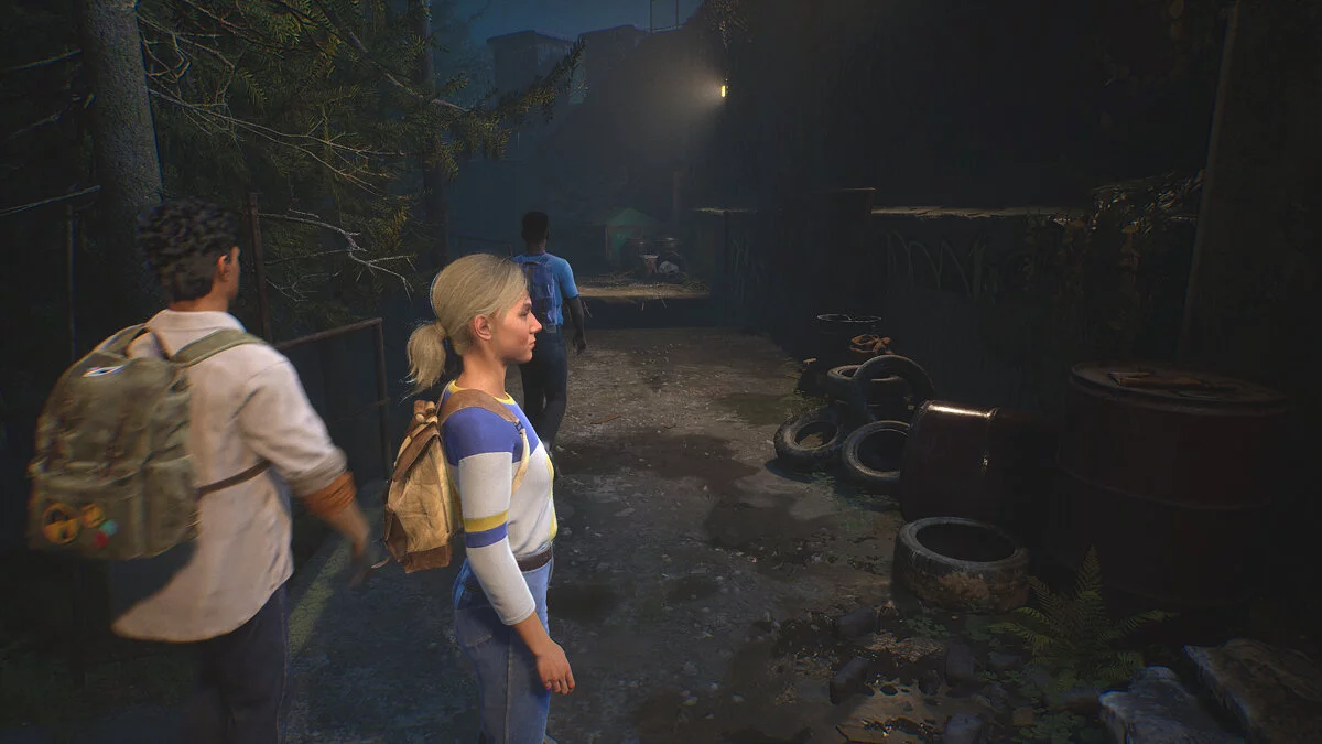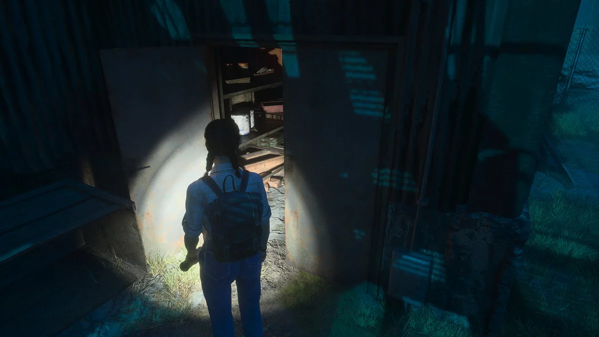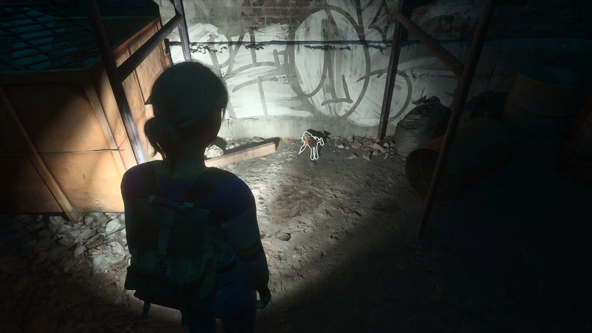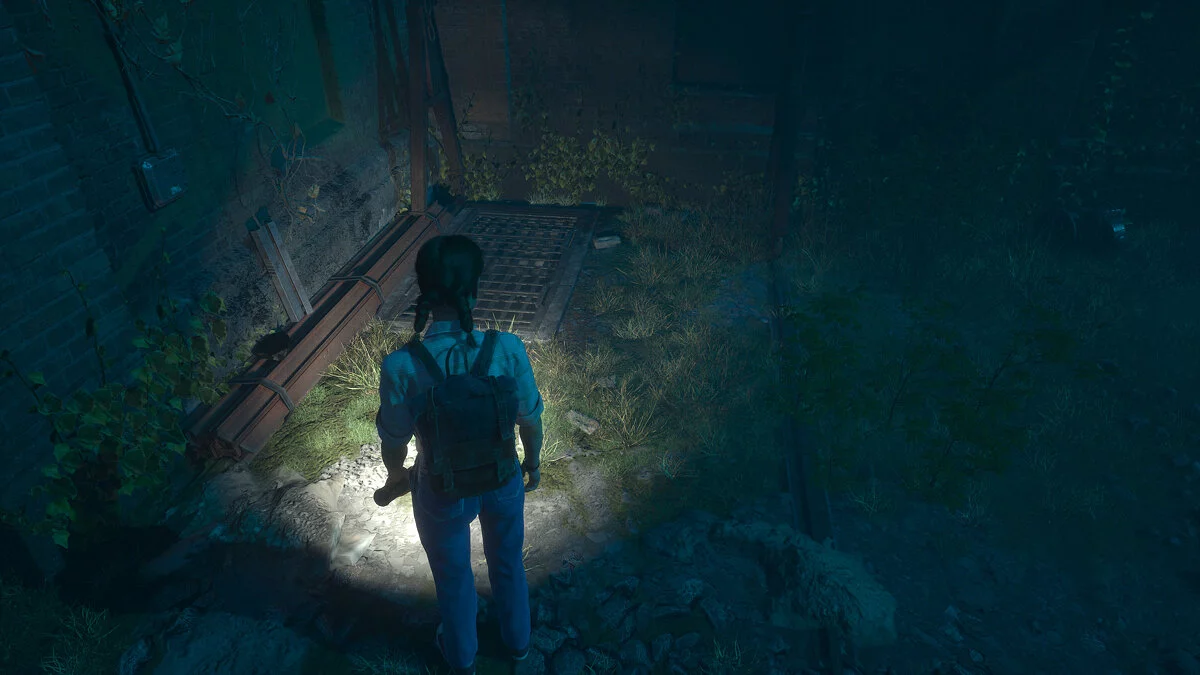 После этого идите за псом. Пройдите вперед, пока герои не заметят решетку в земле. Ее нужно чем-то поддеть. Двигайтесь до конца двора и поверните направо — тут можно залезть, чтобы попасть в освещенную зону. Внутри вы найдете гвоздодер.