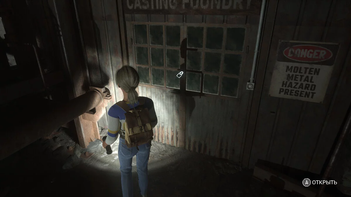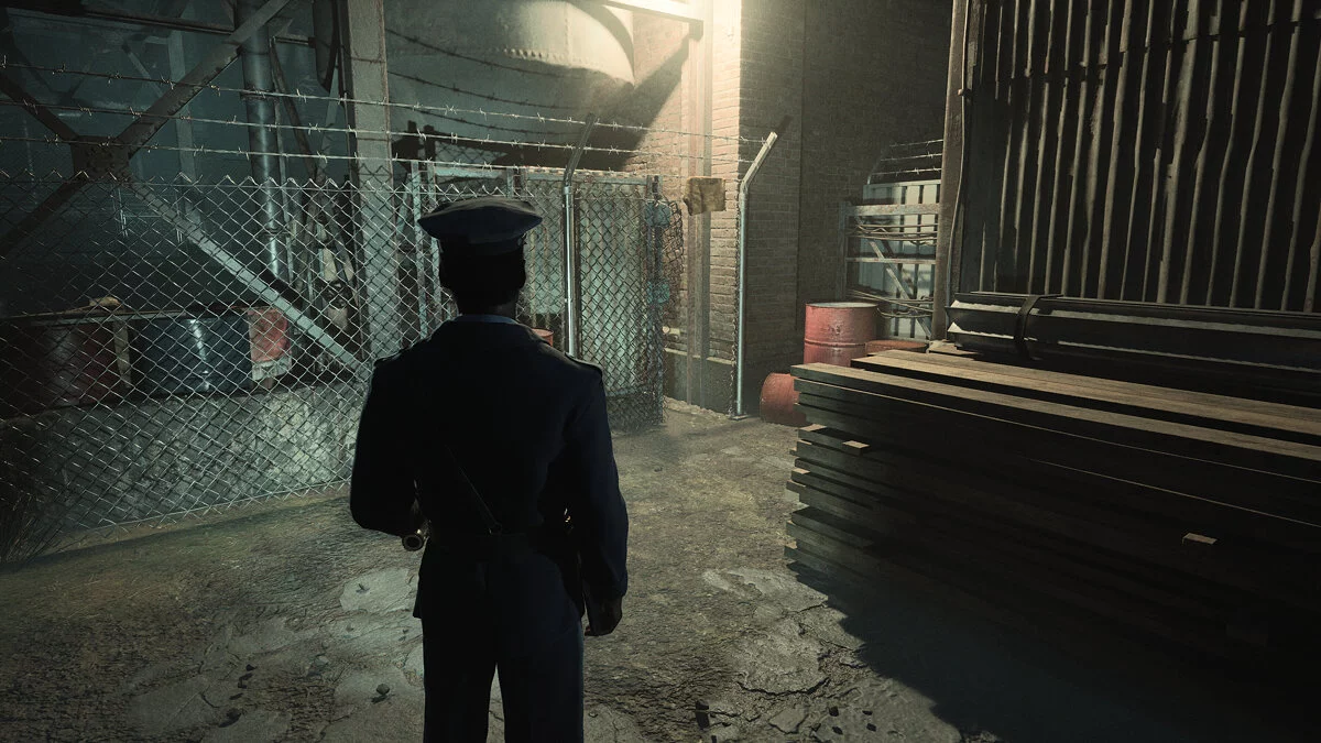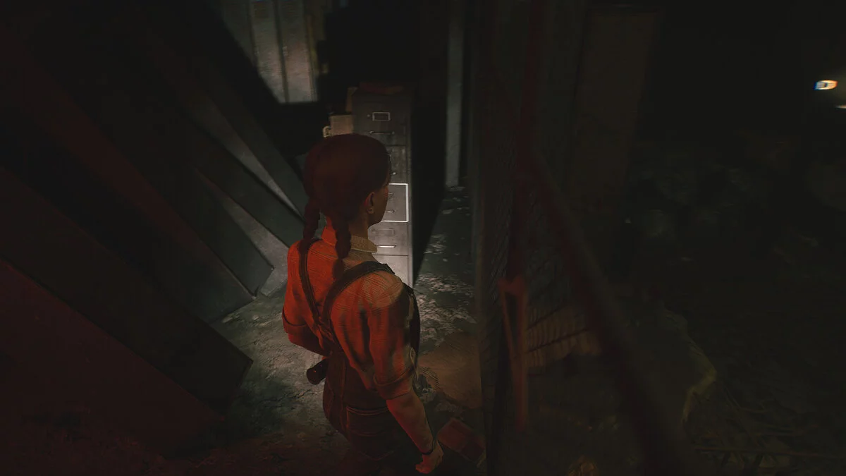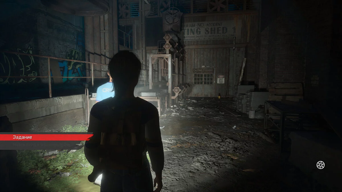 После этого идите за псом. Пройдите вперед, пока герои не заметят решетку в земле. Ее нужно чем-то поддеть. Двигайтесь до конца двора и поверните направо — тут можно залезть, чтобы попасть в освещенную зону. Внутри вы найдете гвоздодер.