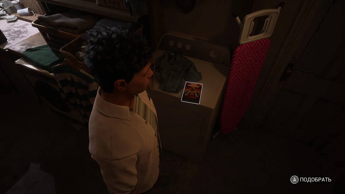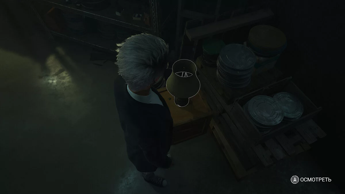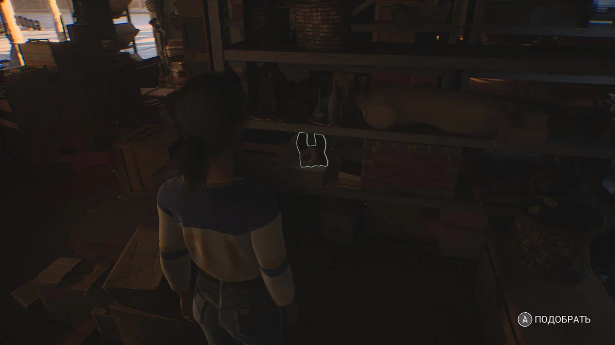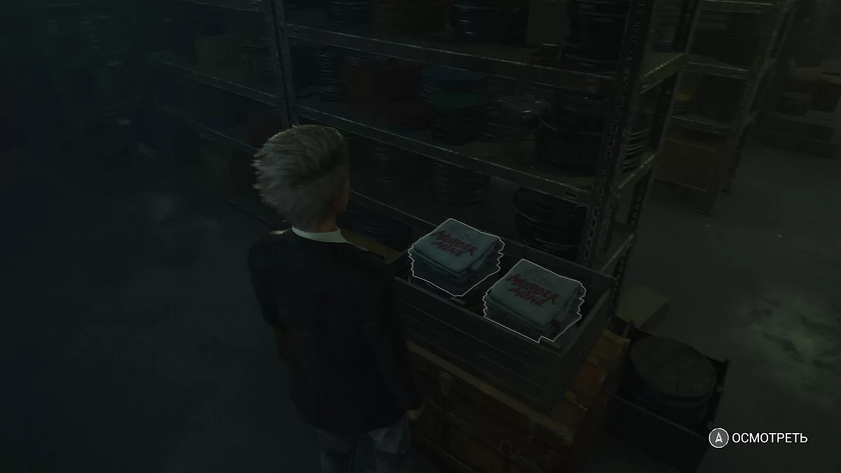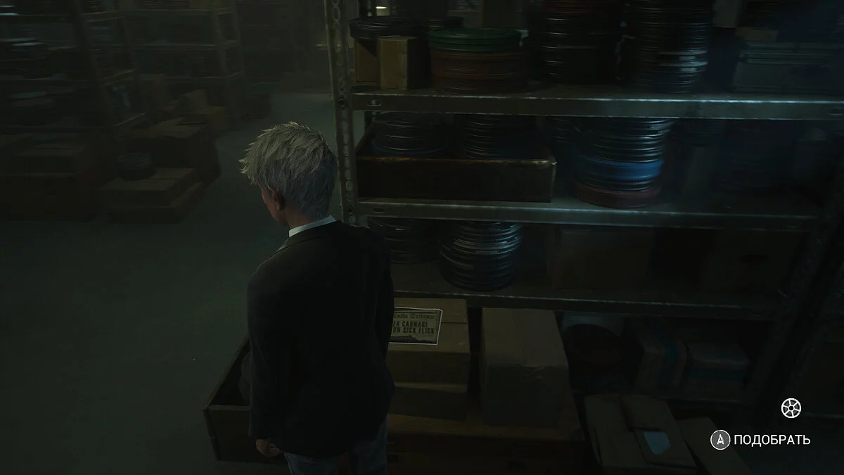 Сэм пропадет, идите вперед. Справа в стене будет панель, с которой можно взаимодействовать. Это архив. Обойдите стеллажи. Вы должны найти стопку маек.