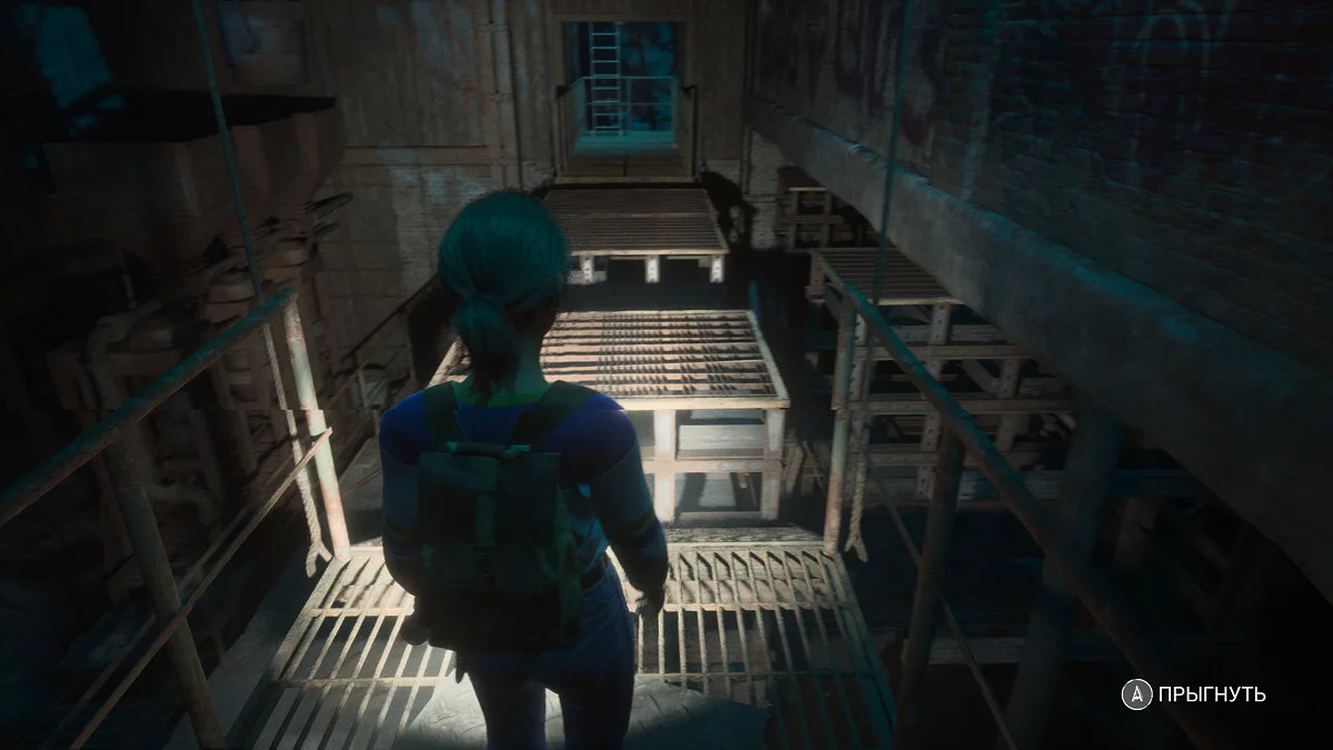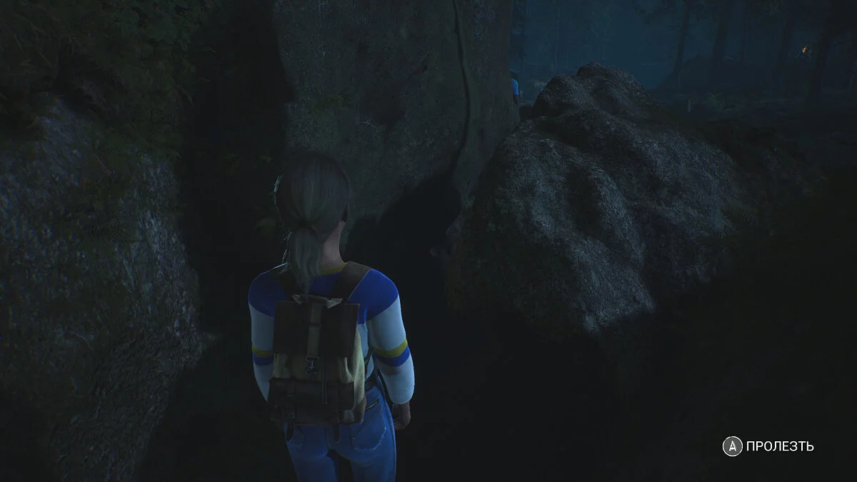 После этого снова спускайтесь по лестнице напротив. Немного впереди будет развилка. Либо по прямой пролезть ползком, либо перепрыгнуть трубы справа. На самом деле путь всего один, поэтому прыгайте через трубы, чтобы найти реликвию «Деревенщина».