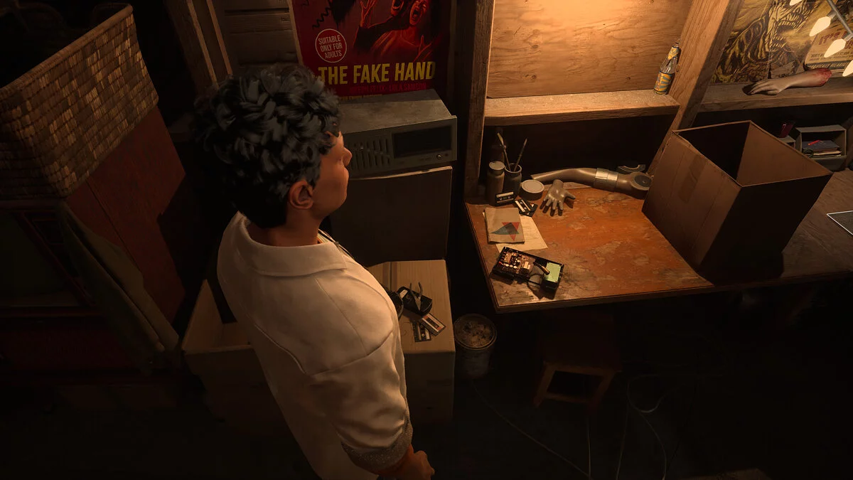 На стеллаже напротив искусственная рука из фильма. Также на полу в следующем ряду лежит реликвия «Медсестра».