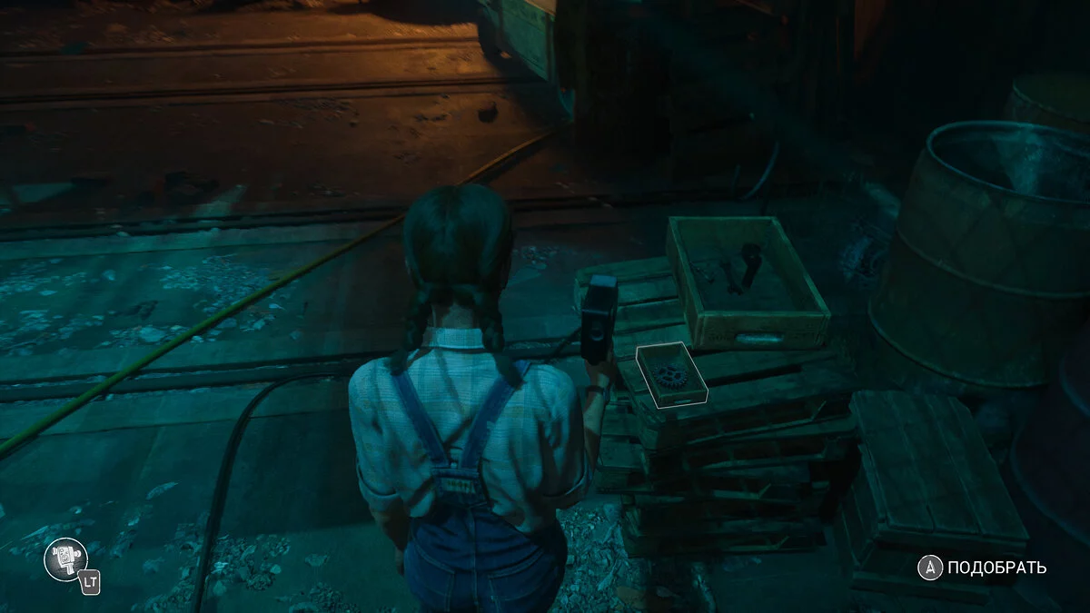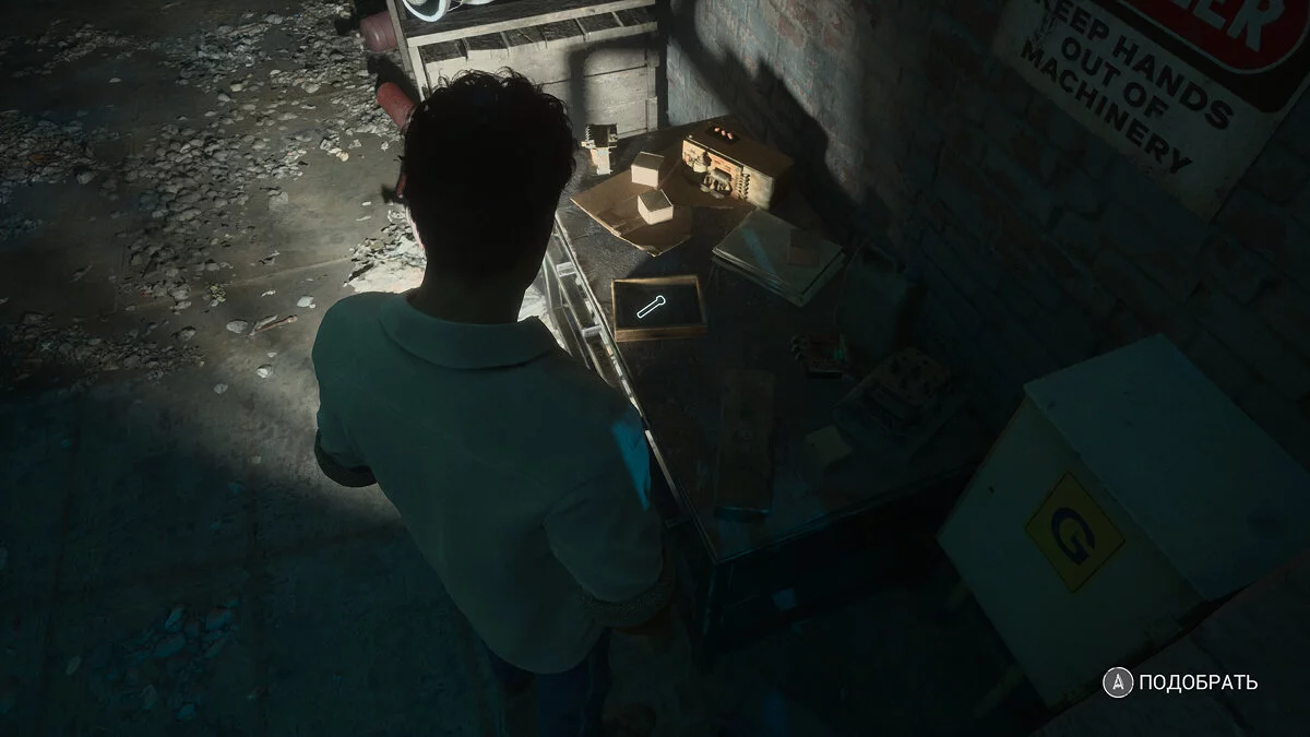Возвращайтесь к лифту. Слева будет дверь, через которую вы можете попасть в комнату с генератором. Устройство сломано, у вас есть ограниченное время для поиска запчастей. Осмотрите стол и подберите удостоверение Августины, там же деталь. Вторая будет неподалеку на противоположном столе. Быстро почините генератор, после чего запустится сцена. Появится Стоун. У Линды выбор: