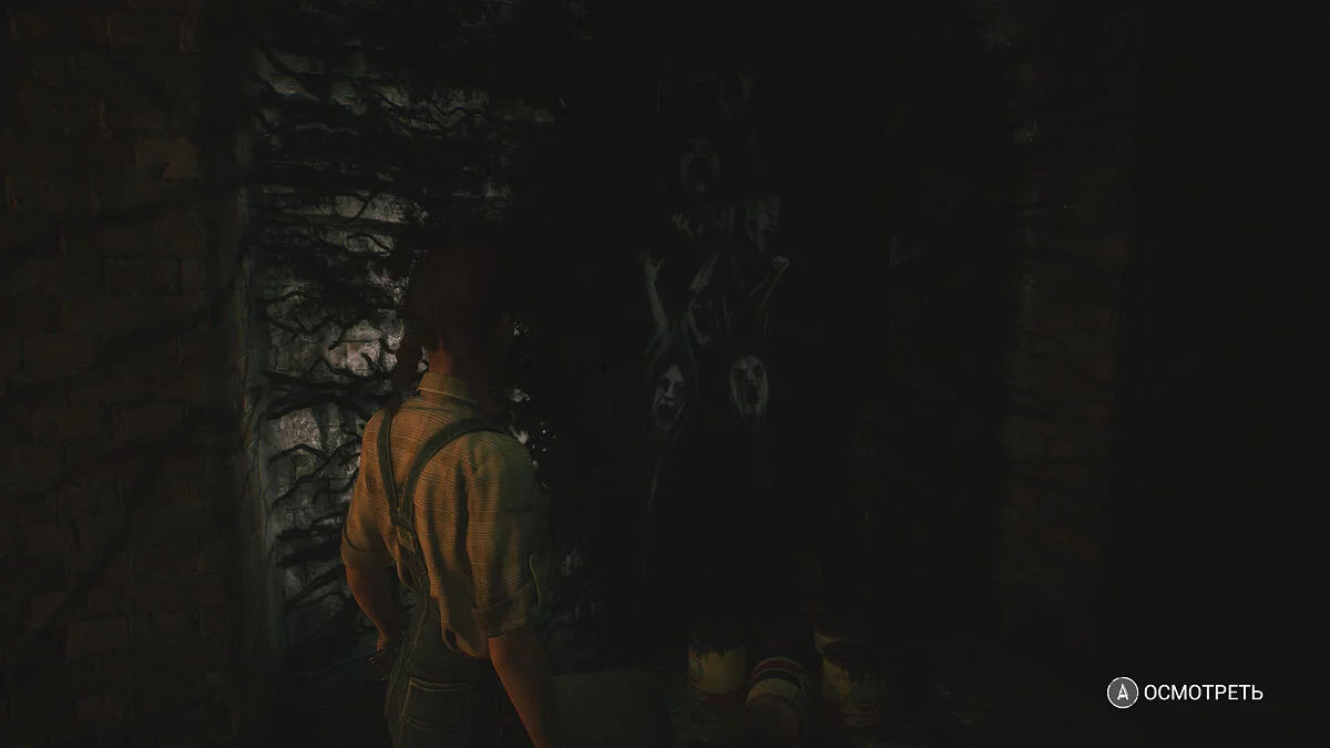 Возвращайтесь к месту, откуда Сэм спустился, и идите налево. Осмотрите стену рядом с желтым указателем, а затем спускайтесь по ступеням.