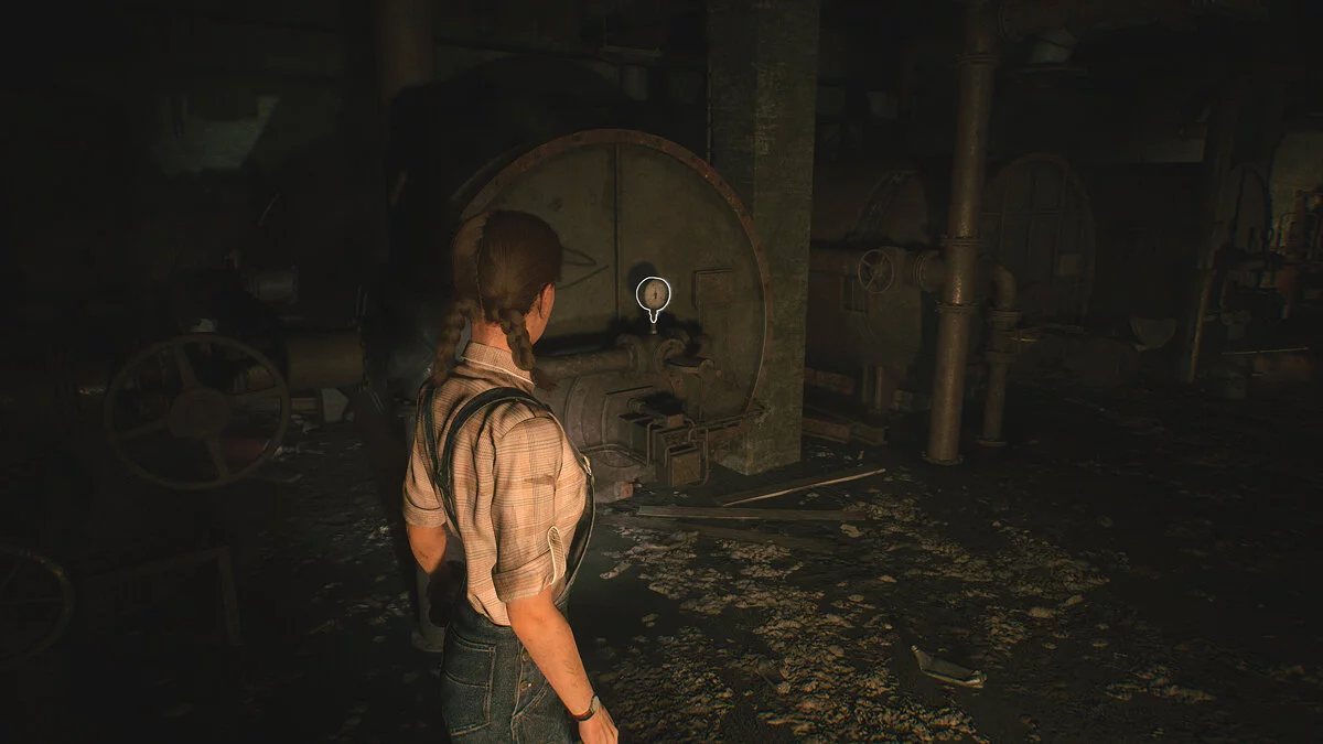 Проход закрыт горячим паром. Вам нужно починить два насоса. Подойдите к первому, чтобы обновилось задание. Нужны две запчасти.
