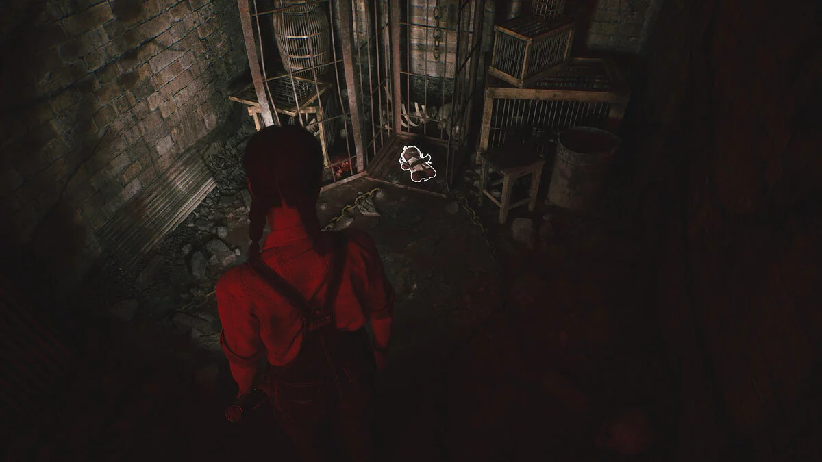 Чуть впереди проход закрыт железным листом. Отодвиньте его, чтобы попасть в логово маньяка. Справа на столе записка, а впереди в клетке реликвия «Доктор».