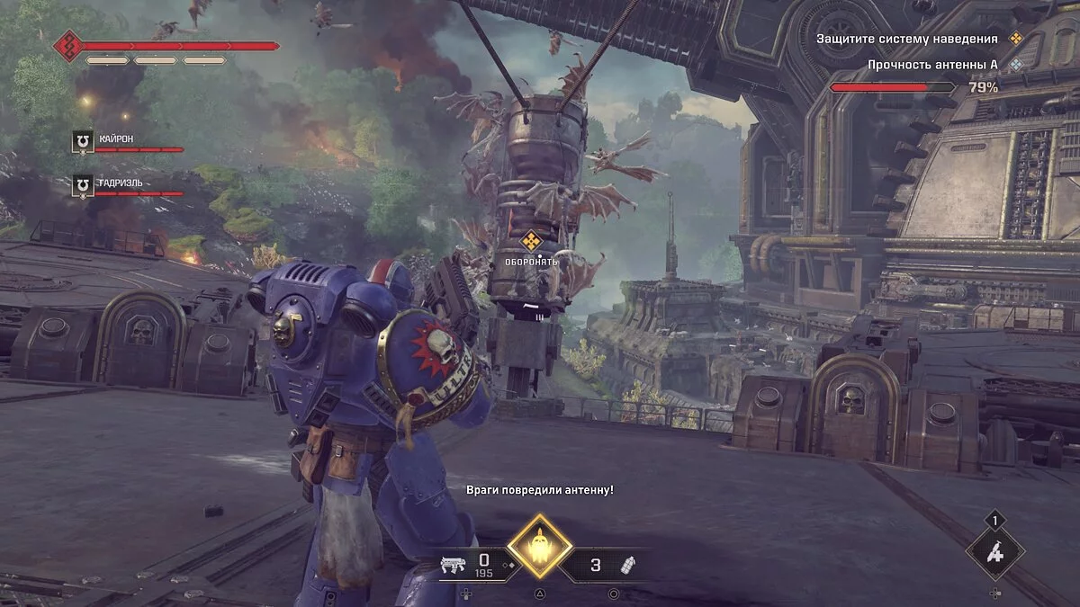 Большую опасность представляют летающие ксеносы. Против них эффективно скорострельное оружие. Недалеко от антенны D вы найдёте тяжёлый болтер, который особенно полезен на финальном этапе сражения. После победы над тиранидами наведите зенитные оружия на корабли-улья.