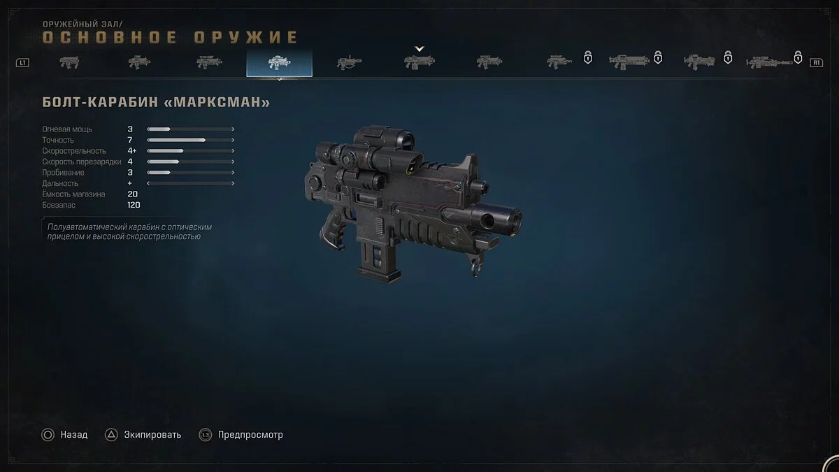 Поговорите с капитаном Акерманом, после чего отправляйтесь в оружейный зал. Обратите внимание на новый болт-карабин «Марксман».