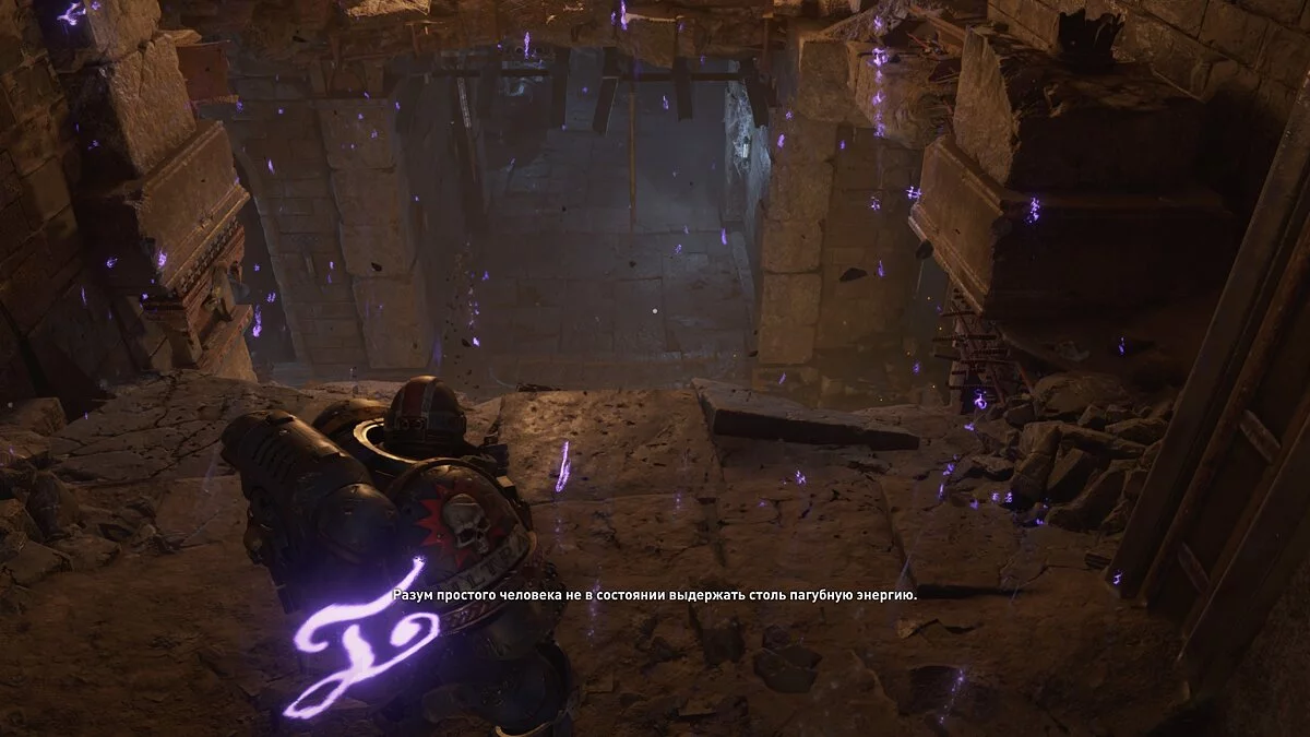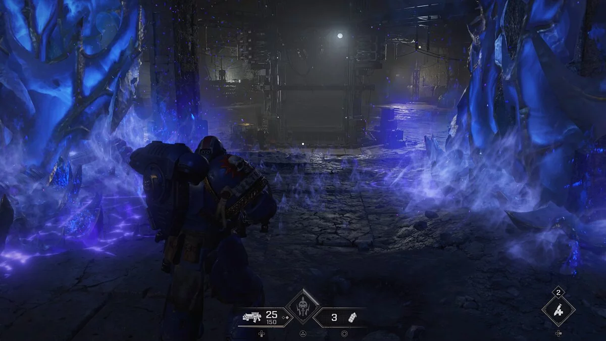 В левом углу арены есть проход, покрытый скверной. Там есть еретический артефакт. Уничтожьте его и двигайтесь за союзным терминатором к синей полусфере. Когда окажетесь в варпе, двигайтесь вперёд, между колонн, а затем поворачивайте направо.