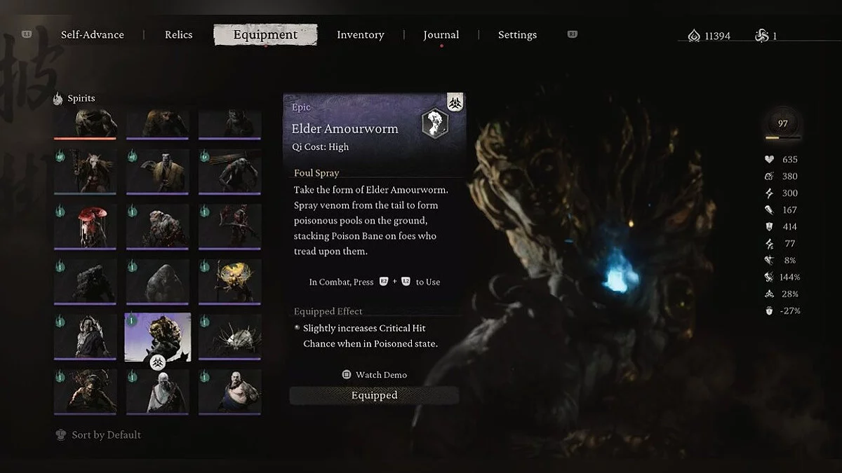 Дух Старшего Амурчервя не является самым сильным игре, в тоже время он отлично подойдет для создания ряда интересных билдов, основанных на AOE-уроне от атаки ядом.