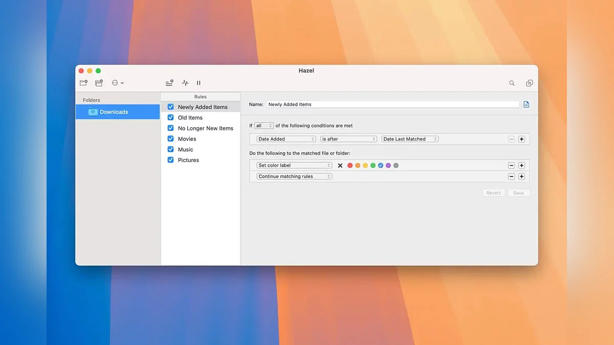 Hazel — это приложение для пакетной обработки файлов. Пользователь задаёт правила, например, как переименовывать файлы, куда их перемещать и где искать, после чего Hazel автоматически приступает к работе, обрабатывая файлы за считанные секунды и значительно экономя время.