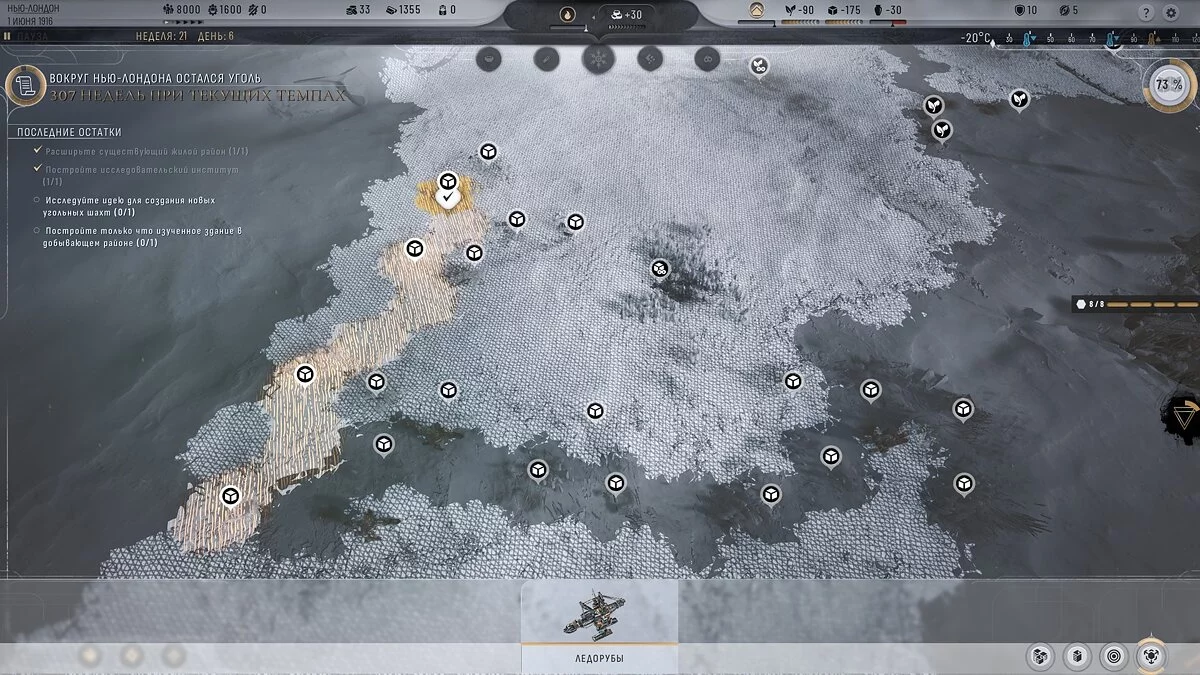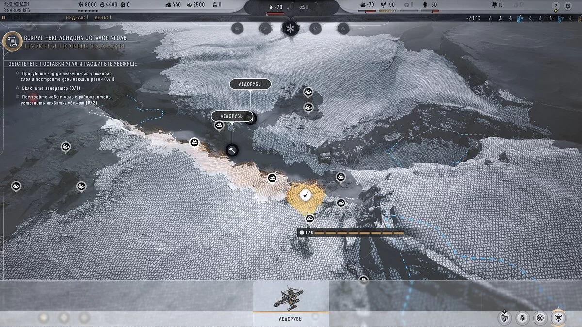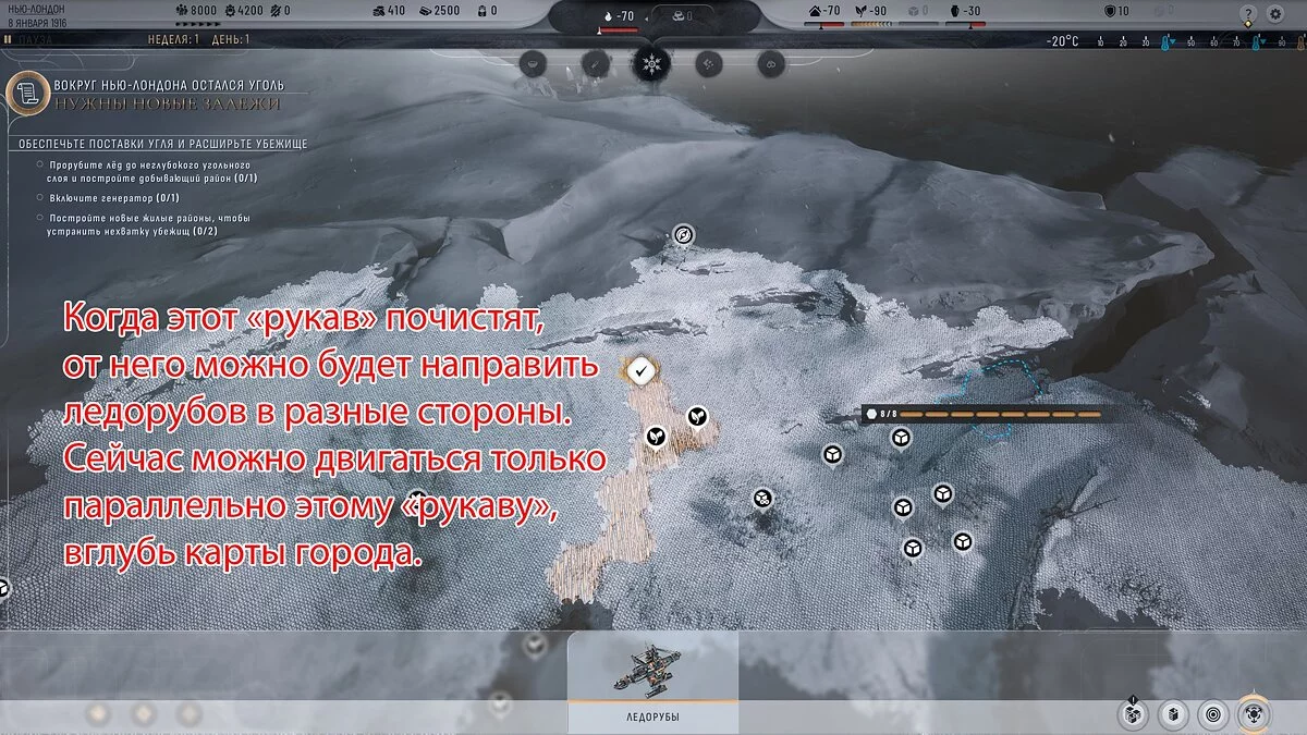 Это намеренное усложнение, делающее одним из ключевых навыков в Frostpunk 2 умение эффективно распределять и использовать отряды ледорубов. Чем лучше вы организуете эту работу, тем быстрее освободите место для новых районов и достигните лакомых кусочков карты, содержащих ресурсы. Для ускорения процесса расчистки льда советуем использовать несколько отрядов одновременно, пусть и в разных местах или на параллельных маршрутах.