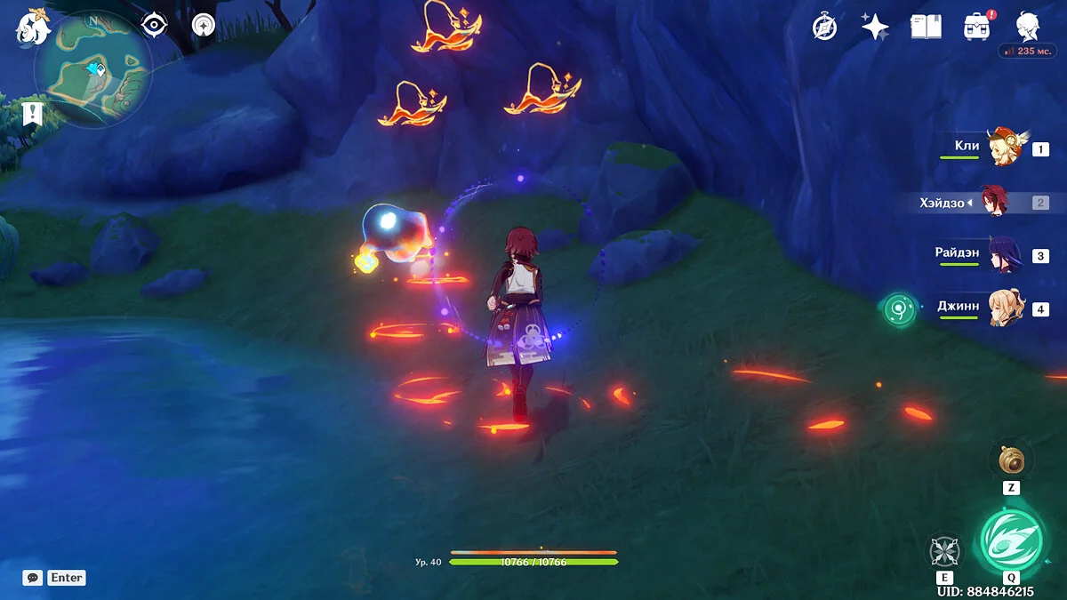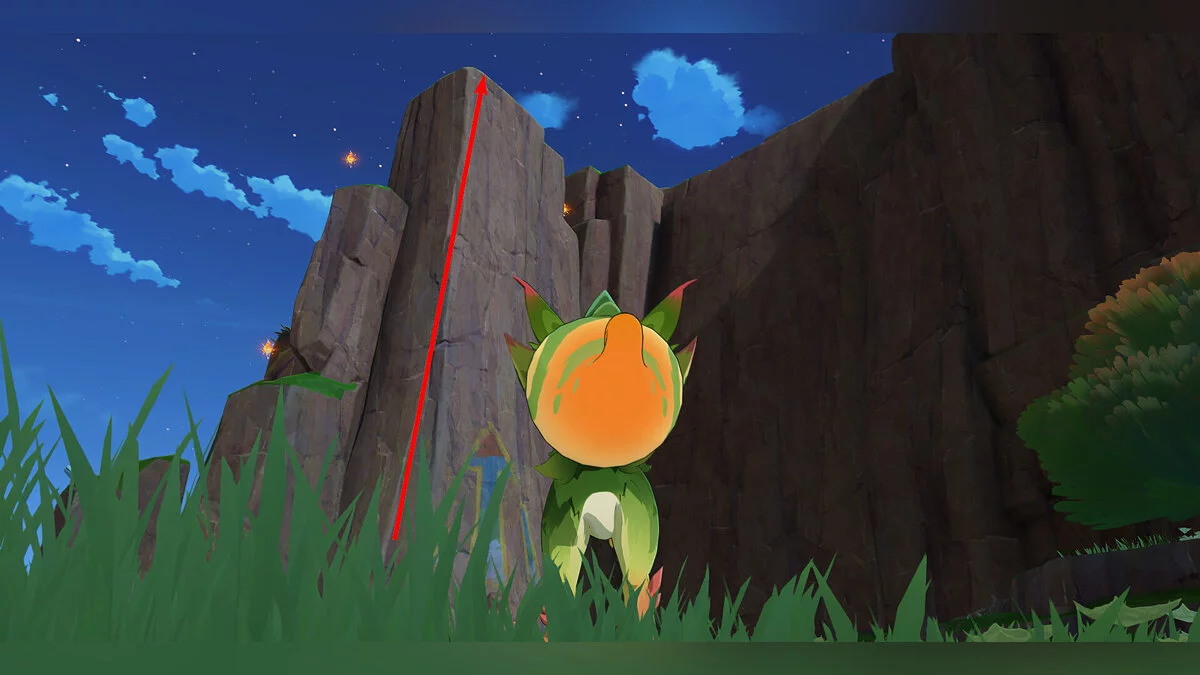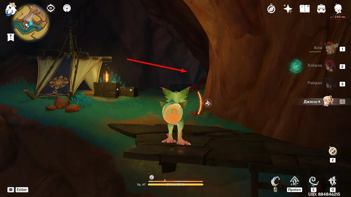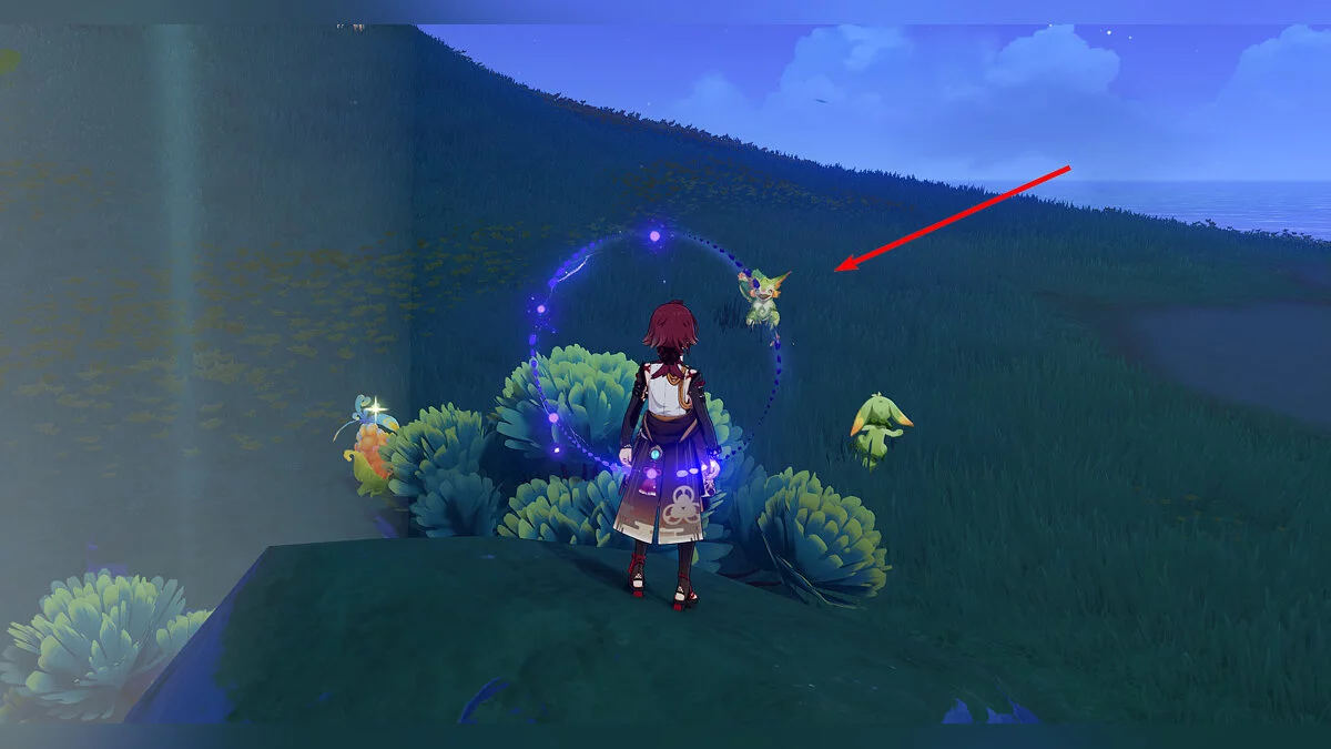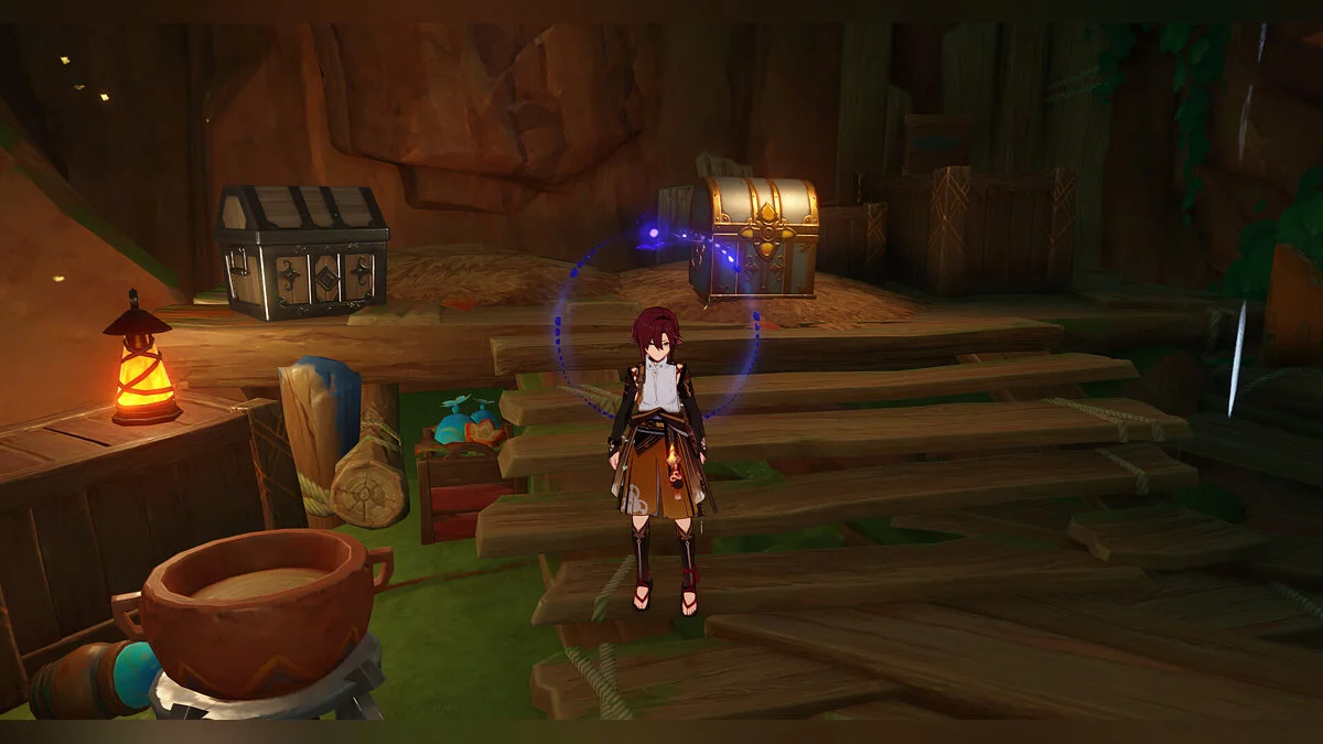 Во-первых, соберите местную диковинку — пепельник. Это такие оранжево-красные бутоны, которые распускаются если атаковать их Пиро. Нужен всего один цветок, если у вас его нет — пройдите чуть дальше, за сундуки и обнаружите на соседнем склоне несколько бутонов. Вернитесь к сундукам и положите один пепельник в миску. Появятся Пиро слаймы, которых нужно уничтожить, после чего откроется богатая сокровищница.