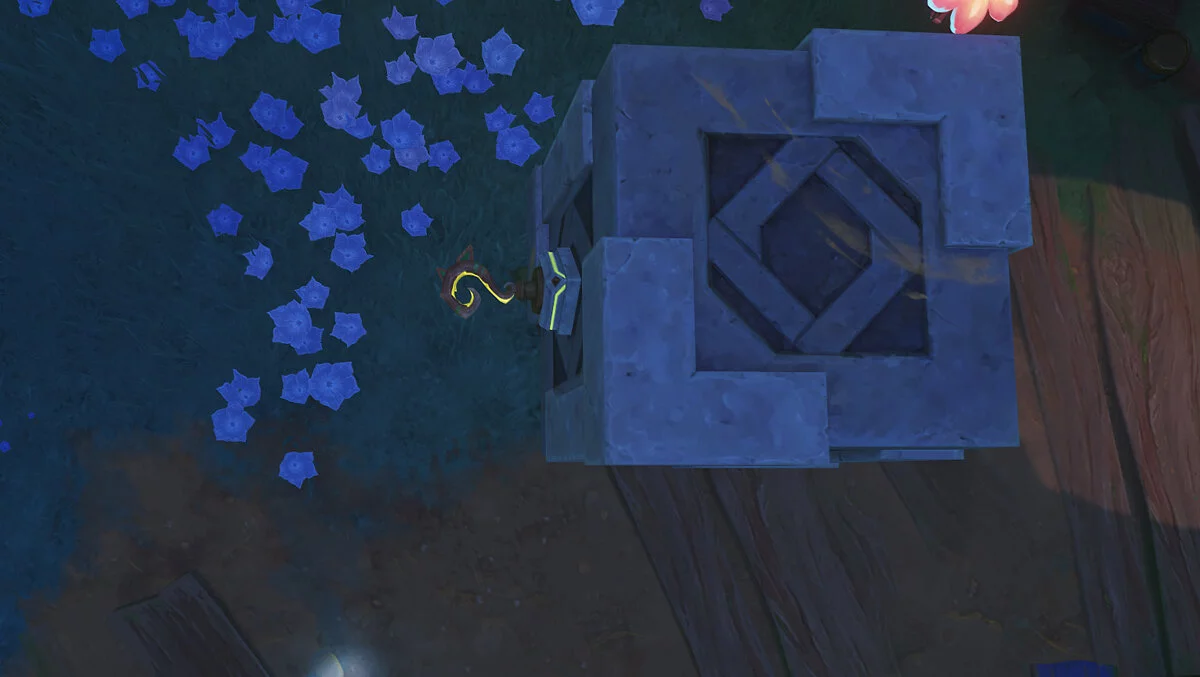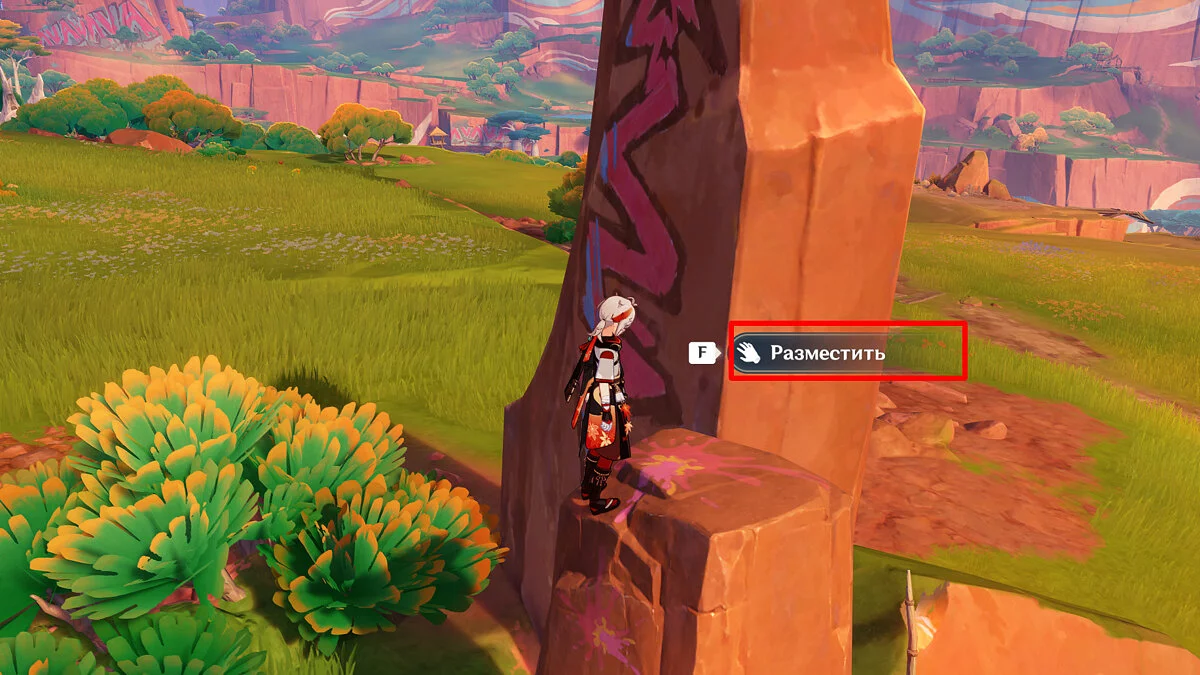 Первая альпака должна стоять на камне с голубой краской: просто подойдите и нажмите «разместить». Вторая будет располагаться на уступе камня напротив, а третья — на том же столбе, но уже на вершине. Вернув все фигурки, возвращайтесь в загон — там ожидает драгоценный сундук.